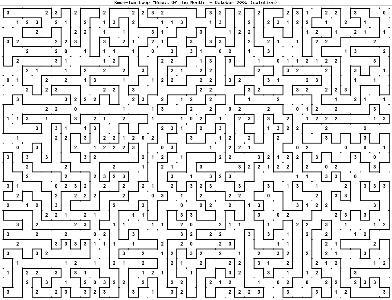 The "Beast Of The Month" is a very large puzzle, too big to display in the usual Kwon-Tom Loop interactive format. It's presented here as an image which you can print off and solve on paper.Printable Beast October 2005(solution)