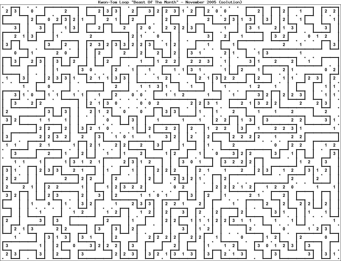 The "Beast Of The Month" is a very large puzzle, too big to display in the usual Kwon-Tom Loop interactive format. It's presented here as an image which you can print off and solve on paper.Printable Beast November 2005(solution)