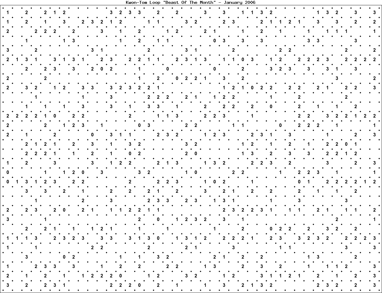 The "Beast Of The Month" is a very large puzzle, too big to display in the usual Kwon-Tom Loop interactive format. It's presented here as an image which you can print off and solve on paper.Printable Beast January 2006(solution)