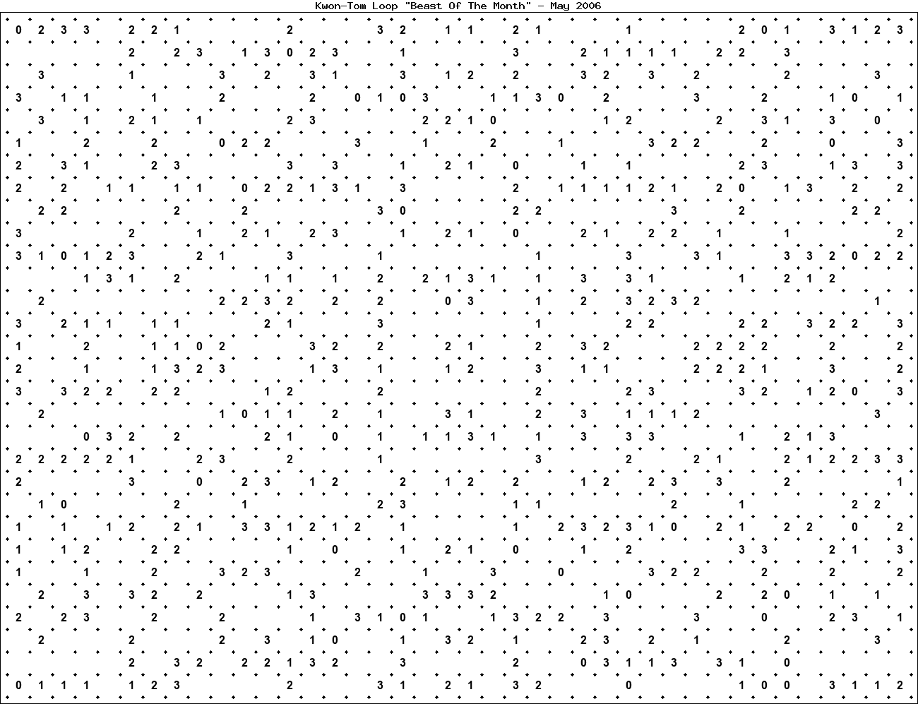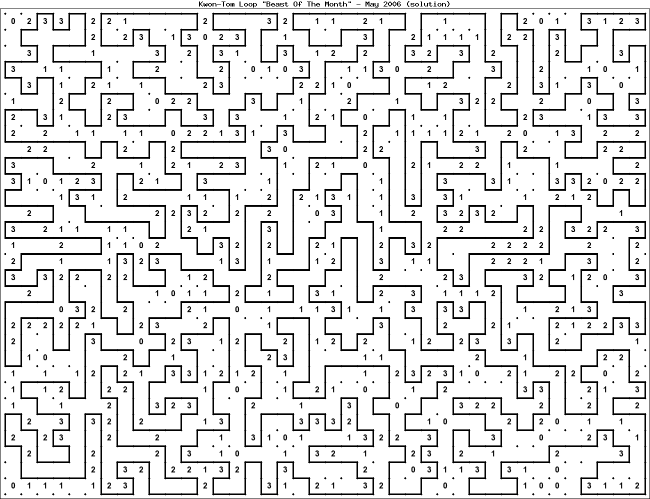 The "Beast Of The Month" is a very large puzzle, too big to display in the usual Kwon-Tom Loop interactive format. It's presented here as an image which you can print off and solve on paper.Printable Beast May 2006(solution)