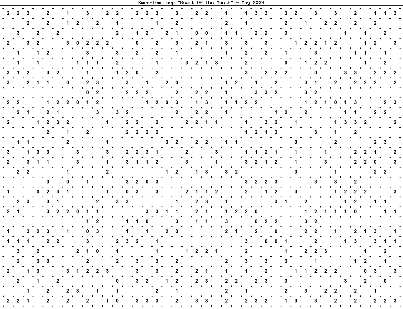 The "Beast Of The Month" is a very large puzzle, too big to display in the usual Kwon-Tom Loop interactive format. It's presented here as an image which you can print off and solve on paper.Printable Beast May 2009(solution)