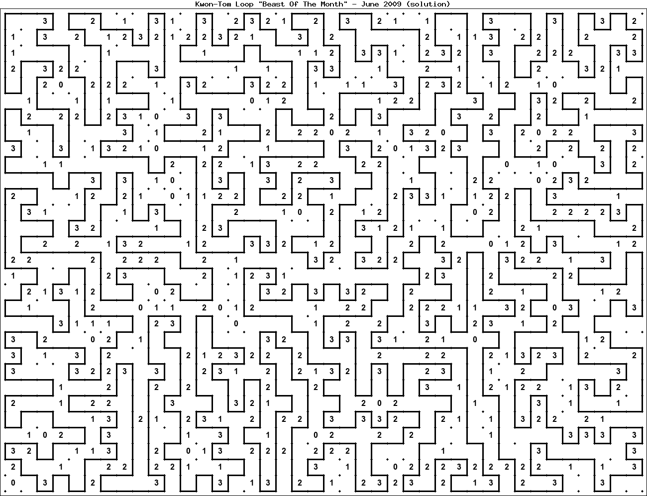 The "Beast Of The Month" is a very large puzzle, too big to display in the usual Kwon-Tom Loop interactive format. It's presented here as an image which you can print off and solve on paper.Printable Beast June 2009(solution)
