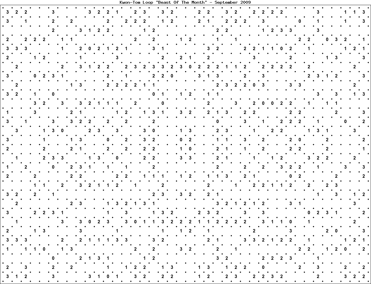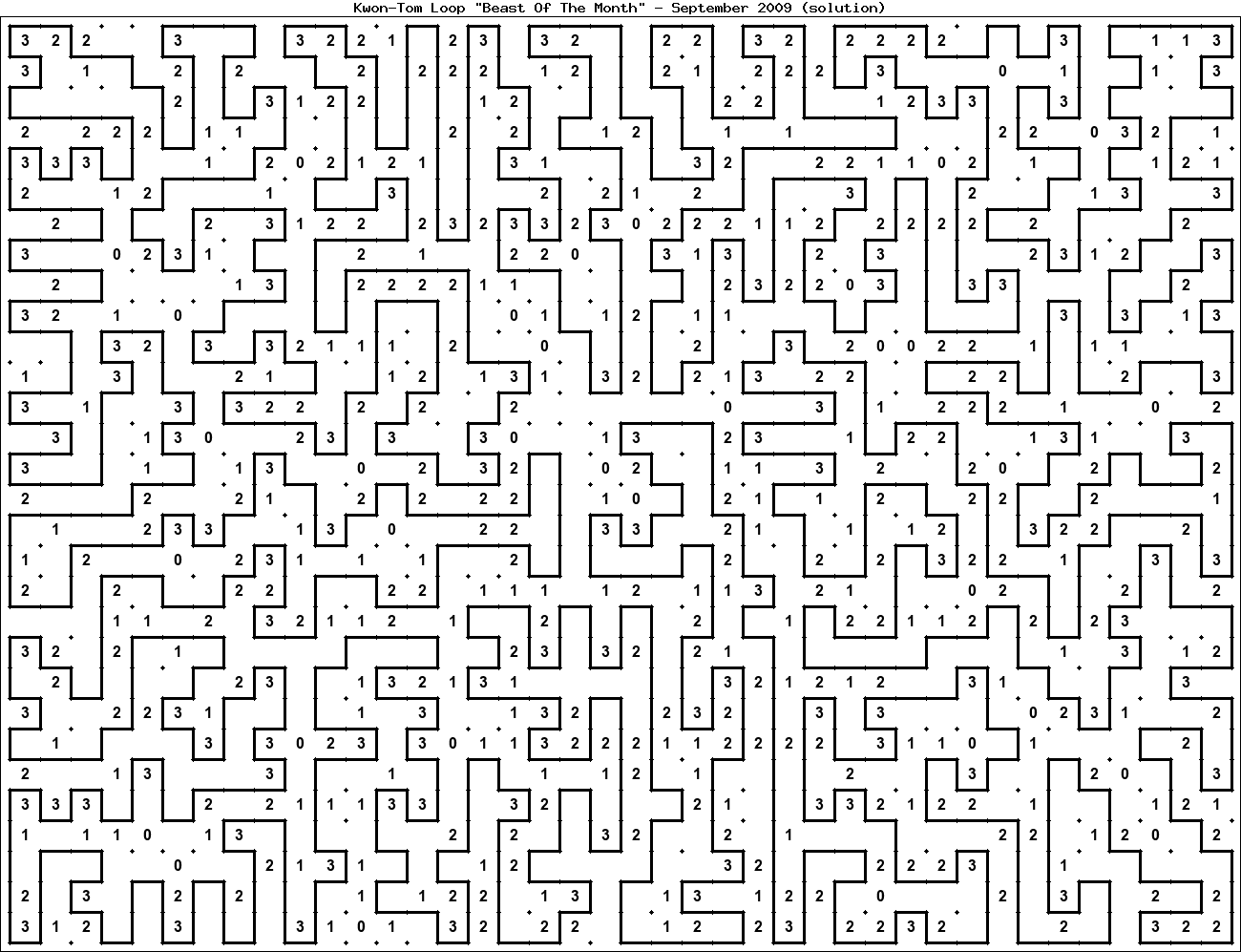 The "Beast Of The Month" is a very large puzzle, too big to display in the usual Kwon-Tom Loop interactive format. It's presented here as an image which you can print off and solve on paper.Printable Beast September 2009(solution)