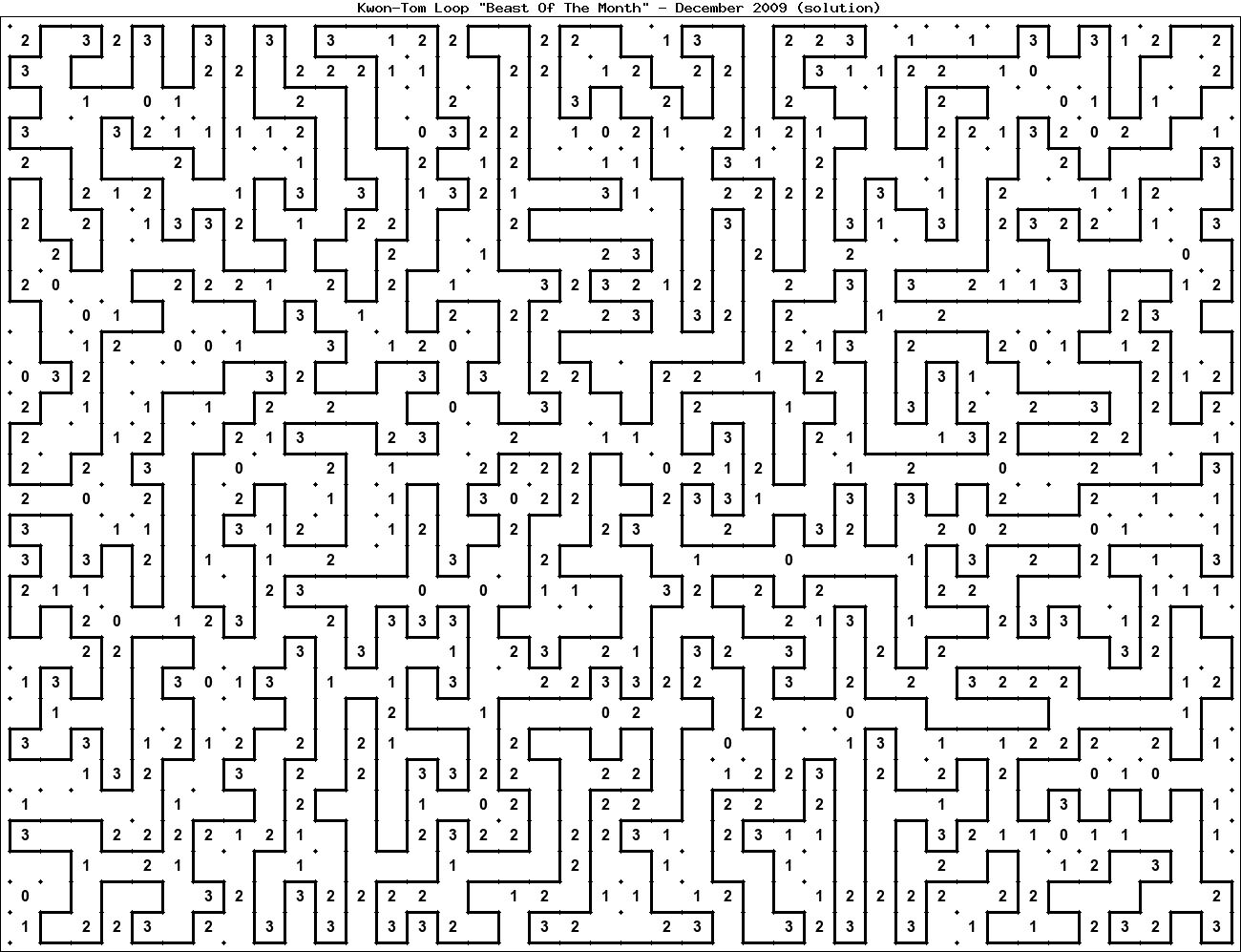 The "Beast Of The Month" is a very large puzzle, too big to display in the usual Kwon-Tom Loop interactive format. It's presented here as an image which you can print off and solve on paper.Printable Beast December 2009(solution)