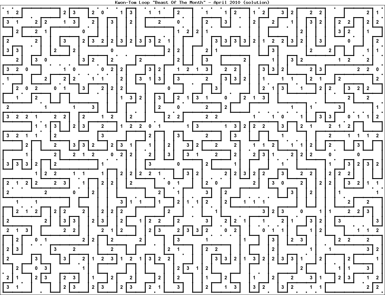 The "Beast Of The Month" is a very large puzzle, too big to display in the usual Kwon-Tom Loop interactive format. It's presented here as an image which you can print off and solve on paper.Printable Beast April 2010(solution)