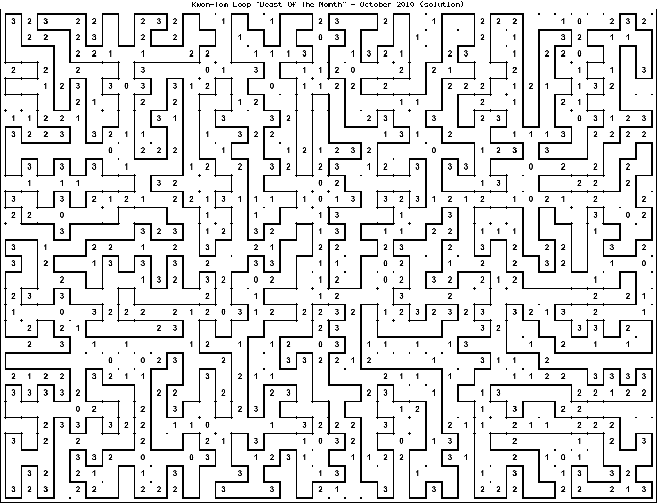 The "Beast Of The Month" is a very large puzzle, too big to display in the usual Kwon-Tom Loop interactive format. It's presented here as an image which you can print off and solve on paper.Printable Beast October 2010(solution)
