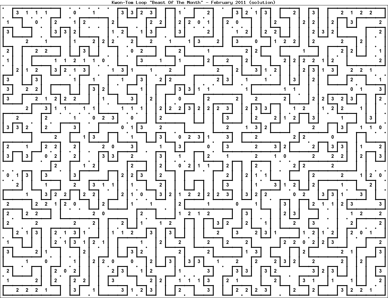 The "Beast Of The Month" is a very large puzzle, too big to display in the usual Kwon-Tom Loop interactive format. It's presented here as an image which you can print off and solve on paper.Printable Beast February 2011(solution)