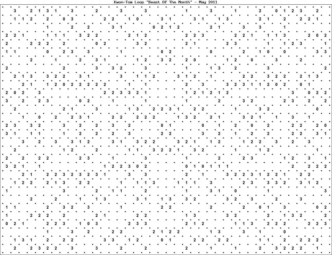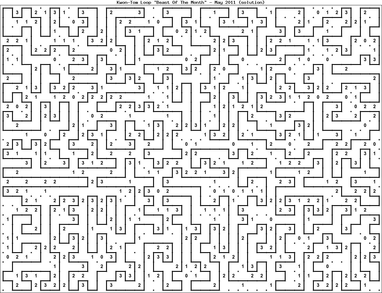 The "Beast Of The Month" is a very large puzzle, too big to display in the usual Kwon-Tom Loop interactive format. It's presented here as an image which you can print off and solve on paper.Printable Beast May 2011(solution)