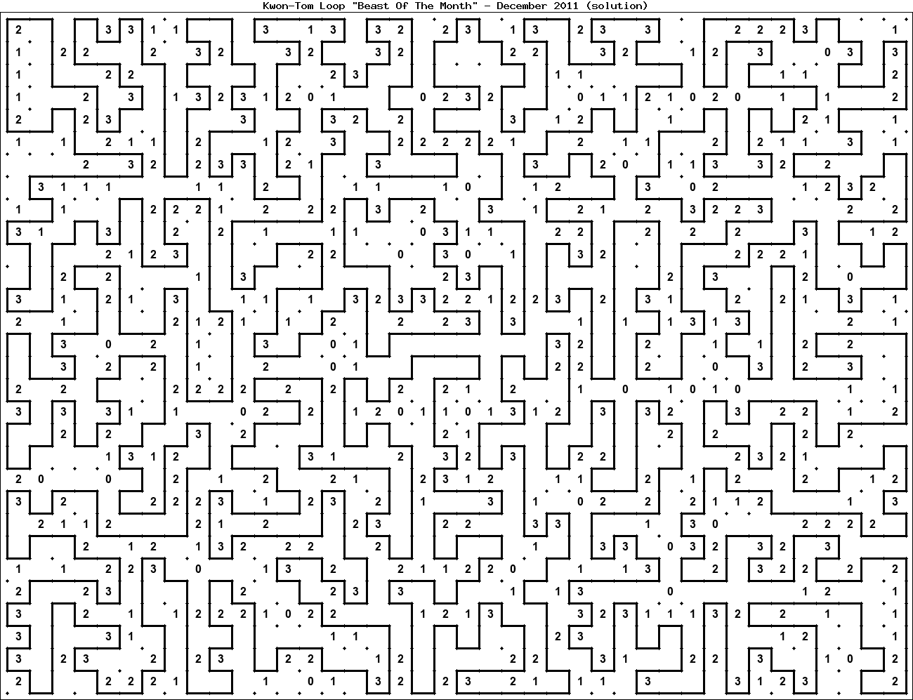 The "Beast Of The Month" is a very large puzzle, too big to display in the usual Kwon-Tom Loop interactive format. It's presented here as an image which you can print off and solve on paper.Printable Beast December 2011(solution)