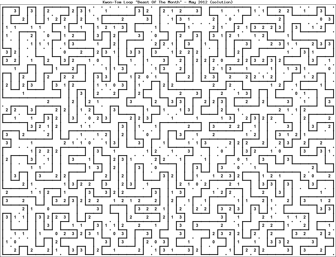 The "Beast Of The Month" is a very large puzzle, too big to display in the usual Kwon-Tom Loop interactive format. It's presented here as an image which you can print off and solve on paper.Printable Beast May 2012(solution)