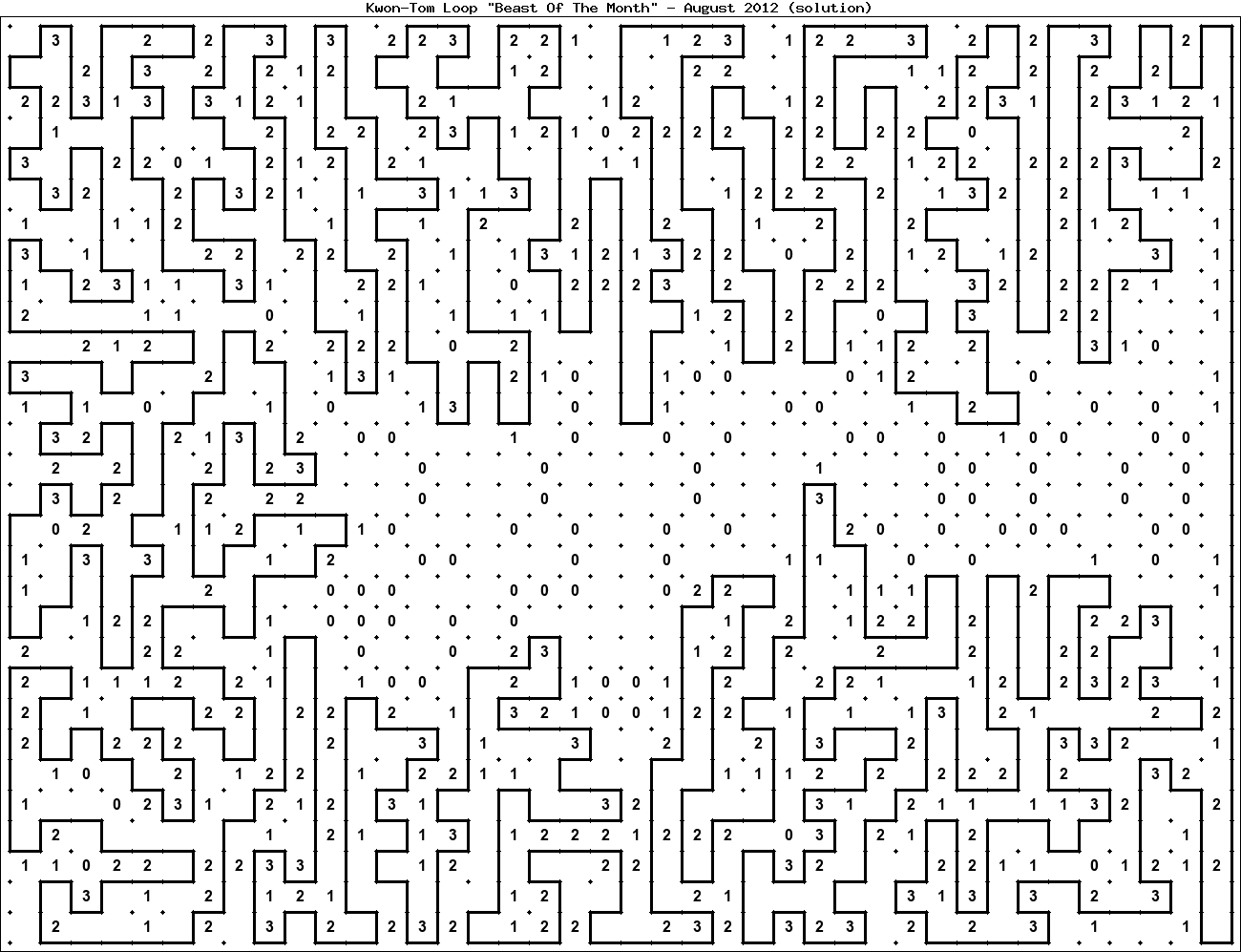 The "Beast Of The Month" is a very large puzzle, too big to display in the usual Kwon-Tom Loop interactive format. It's presented here as an image which you can print off and solve on paper.Printable Beast August 2012(solution)