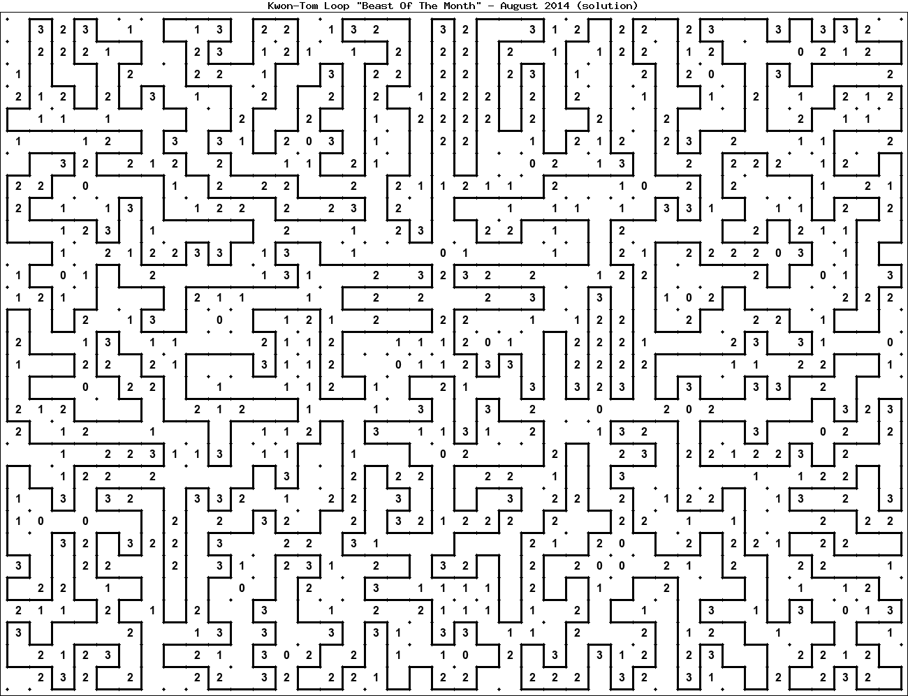 The "Beast Of The Month" is a very large puzzle, too big to display in the usual Kwon-Tom Loop interactive format. It's presented here as an image which you can print off and solve on paper.Printable Beast August 2014(solution)