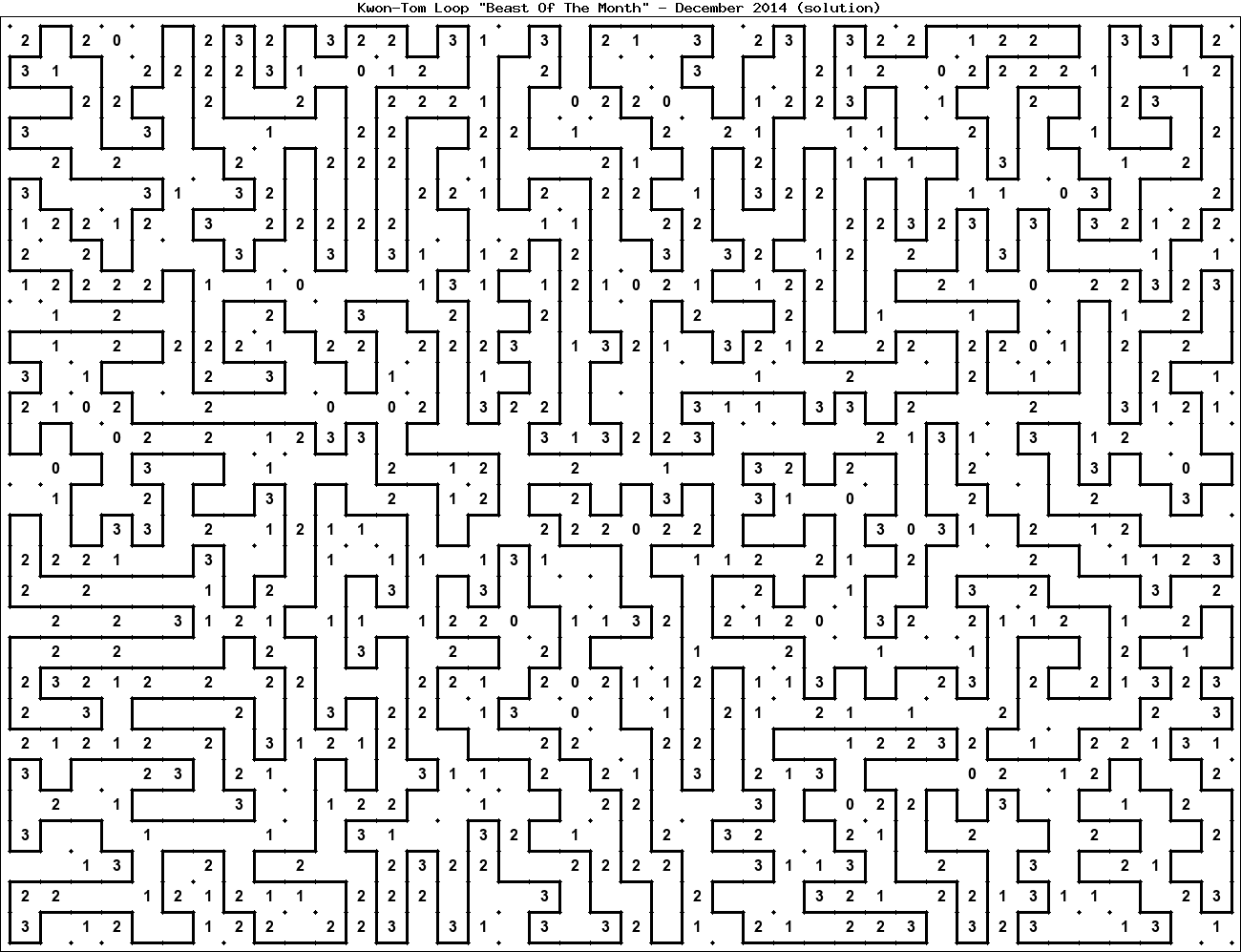 The "Beast Of The Month" is a very large puzzle, too big to display in the usual Kwon-Tom Loop interactive format. It's presented here as an image which you can print off and solve on paper.Printable Beast December 2014(solution)