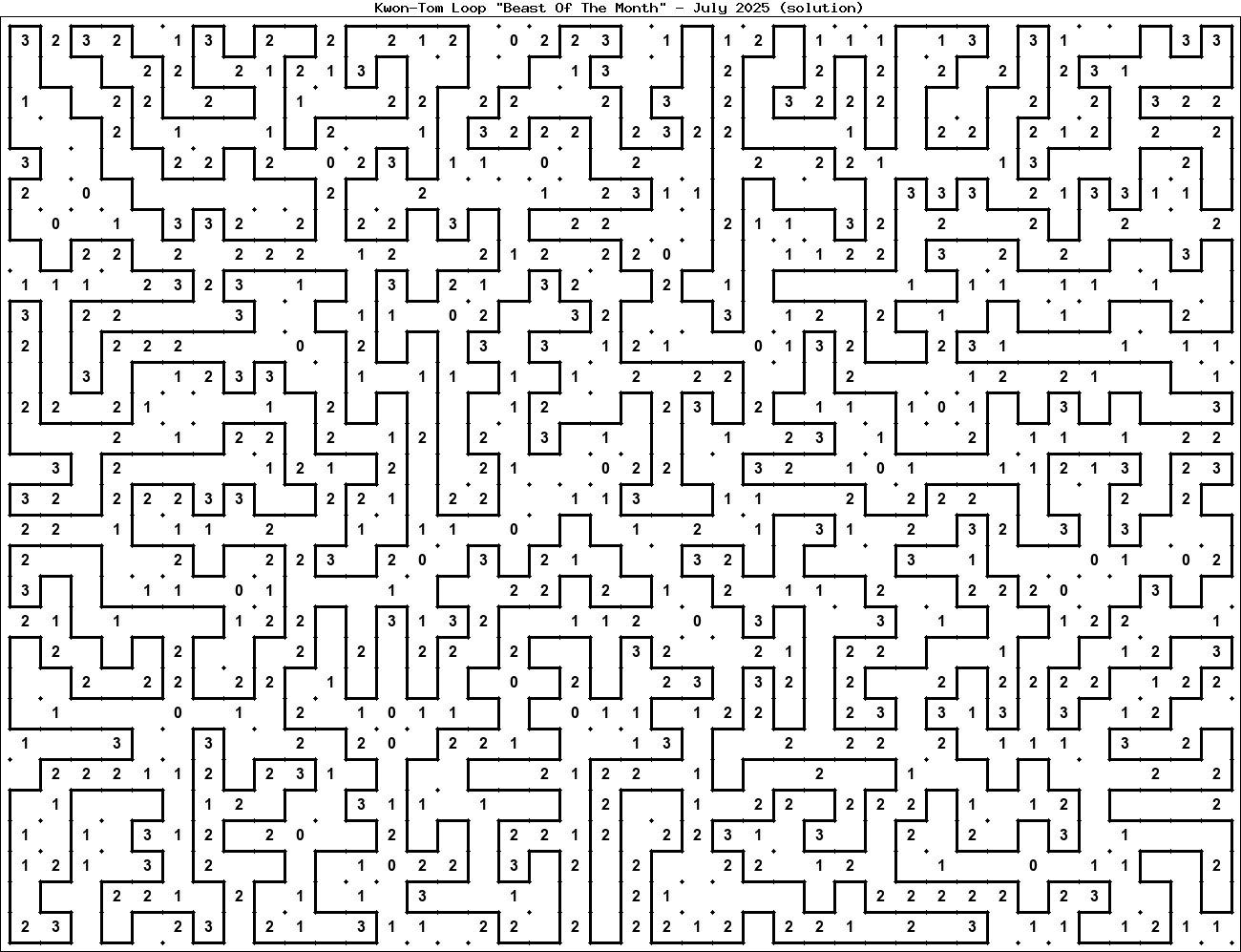 The "Beast Of The Month" is a very large puzzle, too big to display in the usual Kwon-Tom Loop interactive format. It's presented here as an image which you can print off and solve on paper.Printable Beast July 2025(solution)