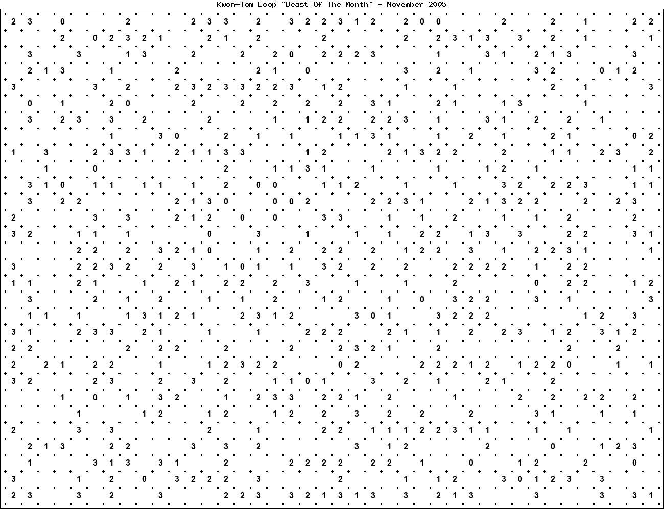The "Beast Of The Month" is a very large puzzle, too big to display in the usual Kwon-Tom Loop interactive format. It's presented here as an image which you can print off and solve on paper.Printable Beast November 2005(solution)