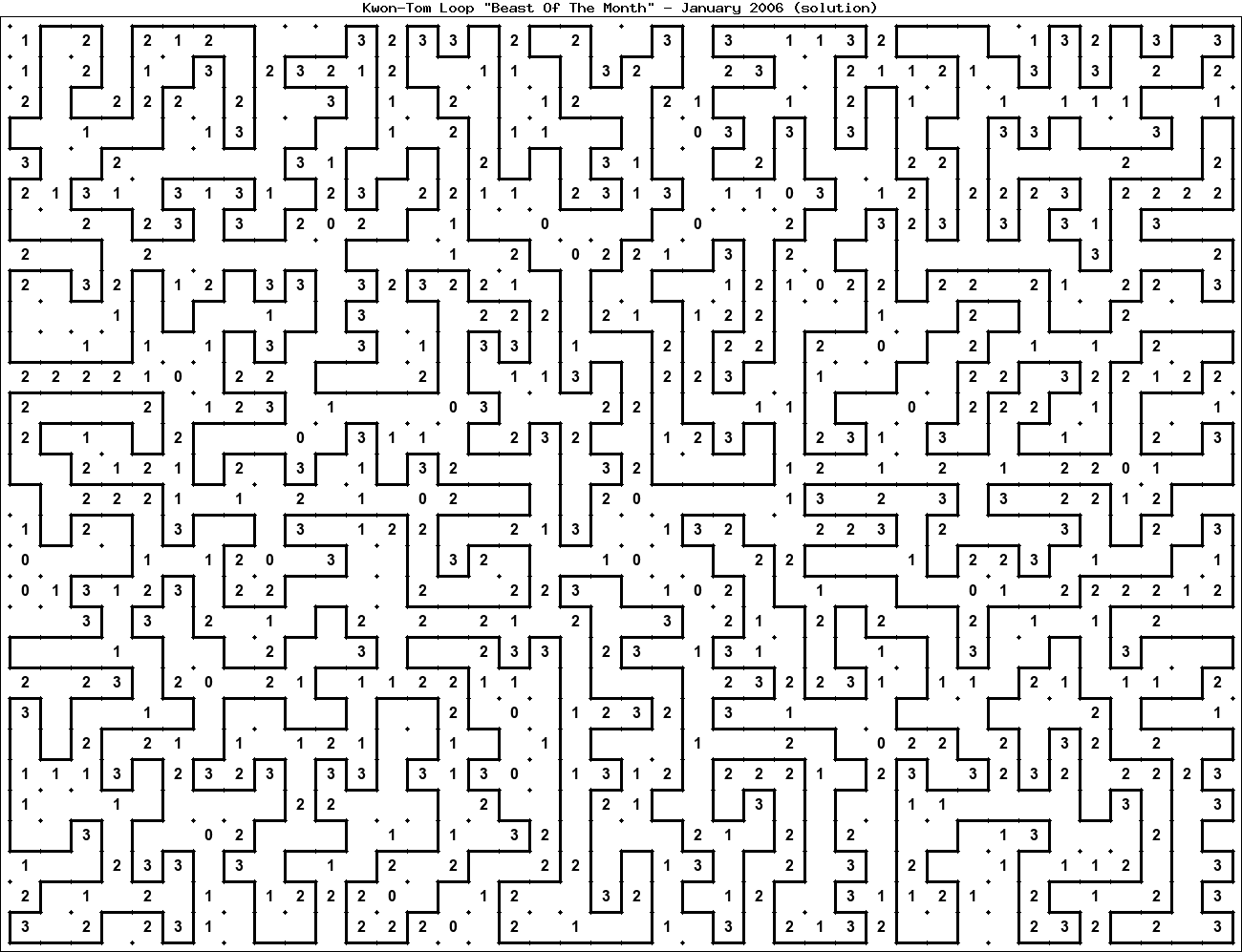 The "Beast Of The Month" is a very large puzzle, too big to display in the usual Kwon-Tom Loop interactive format. It's presented here as an image which you can print off and solve on paper.Printable Beast January 2006(solution)