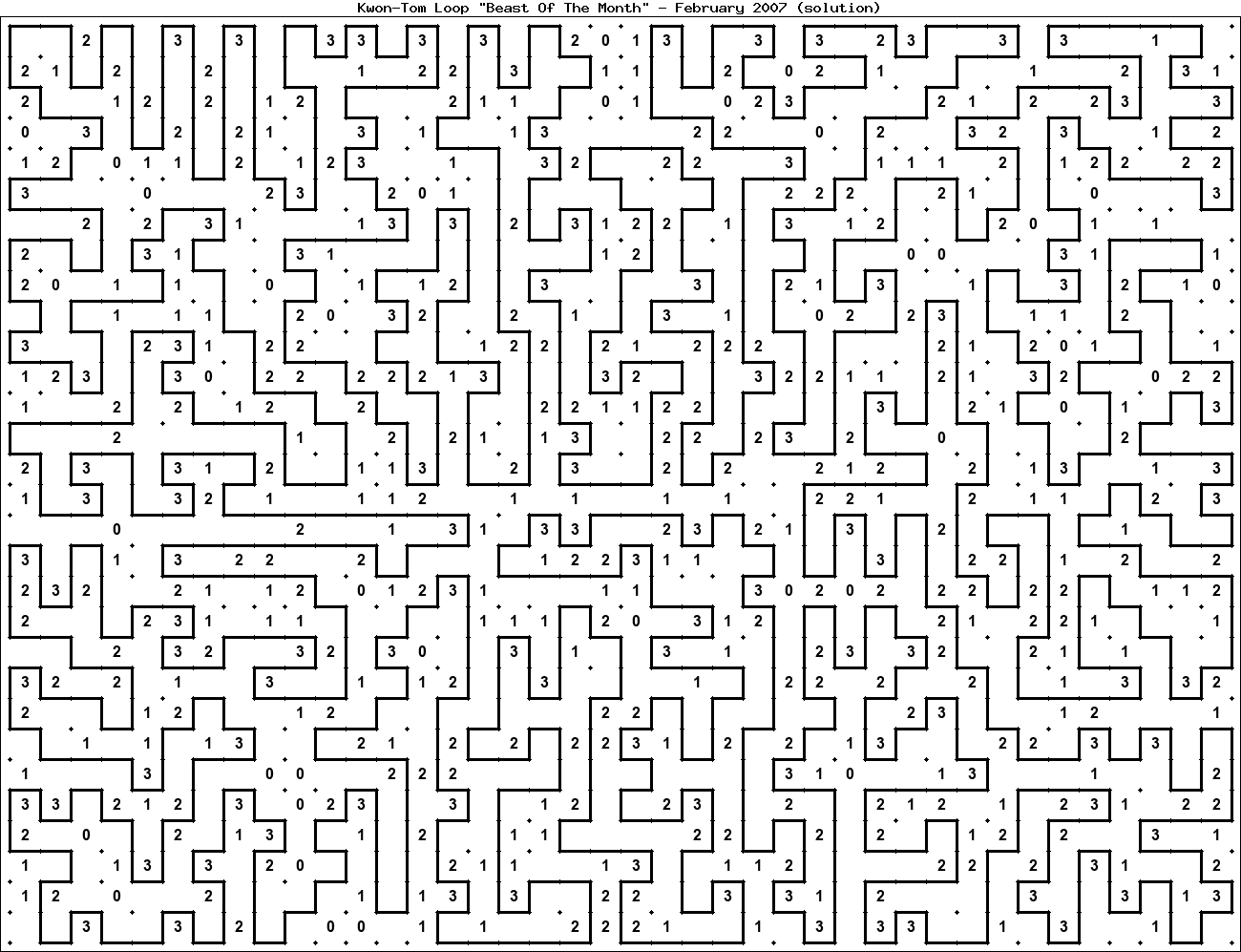 The "Beast Of The Month" is a very large puzzle, too big to display in the usual Kwon-Tom Loop interactive format. It's presented here as an image which you can print off and solve on paper.Printable Beast February 2007(solution)