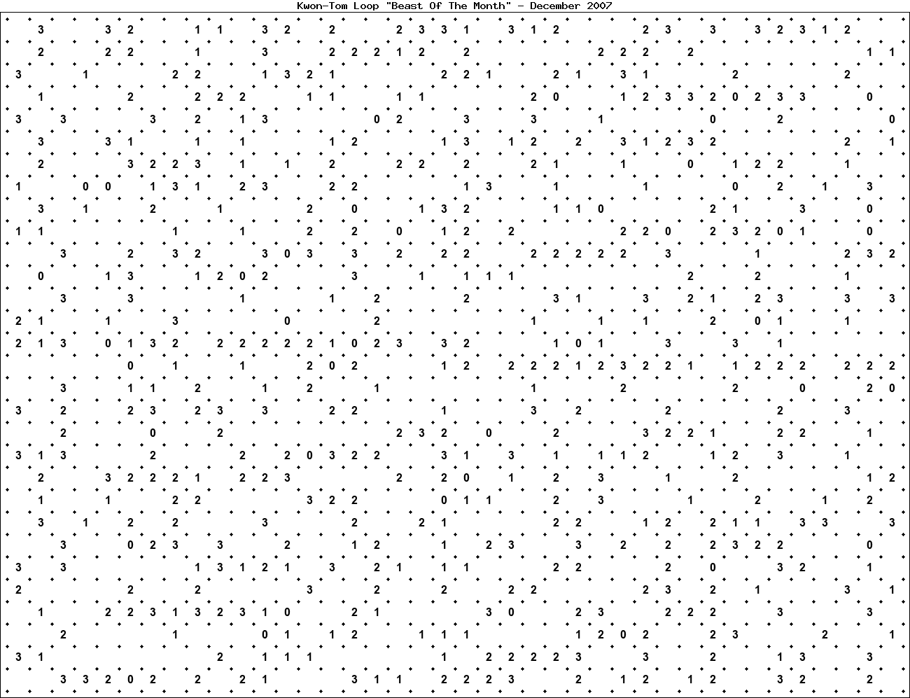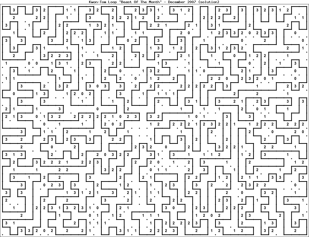 The "Beast Of The Month" is a very large puzzle, too big to display in the usual Kwon-Tom Loop interactive format. It's presented here as an image which you can print off and solve on paper.Printable Beast December 2007(solution)