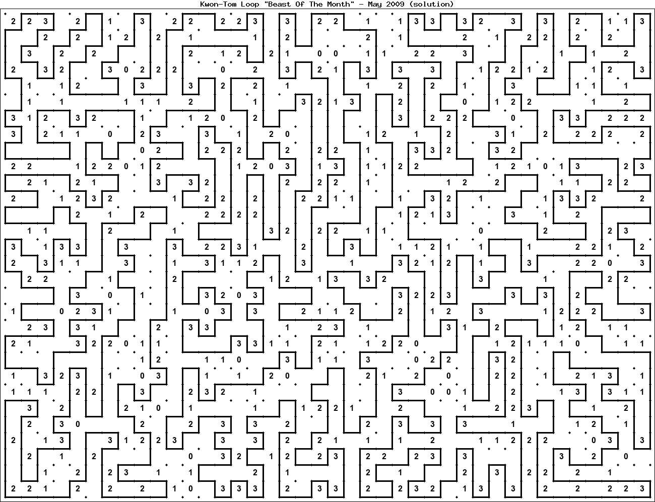 The "Beast Of The Month" is a very large puzzle, too big to display in the usual Kwon-Tom Loop interactive format. It's presented here as an image which you can print off and solve on paper.Printable Beast May 2009(solution)
