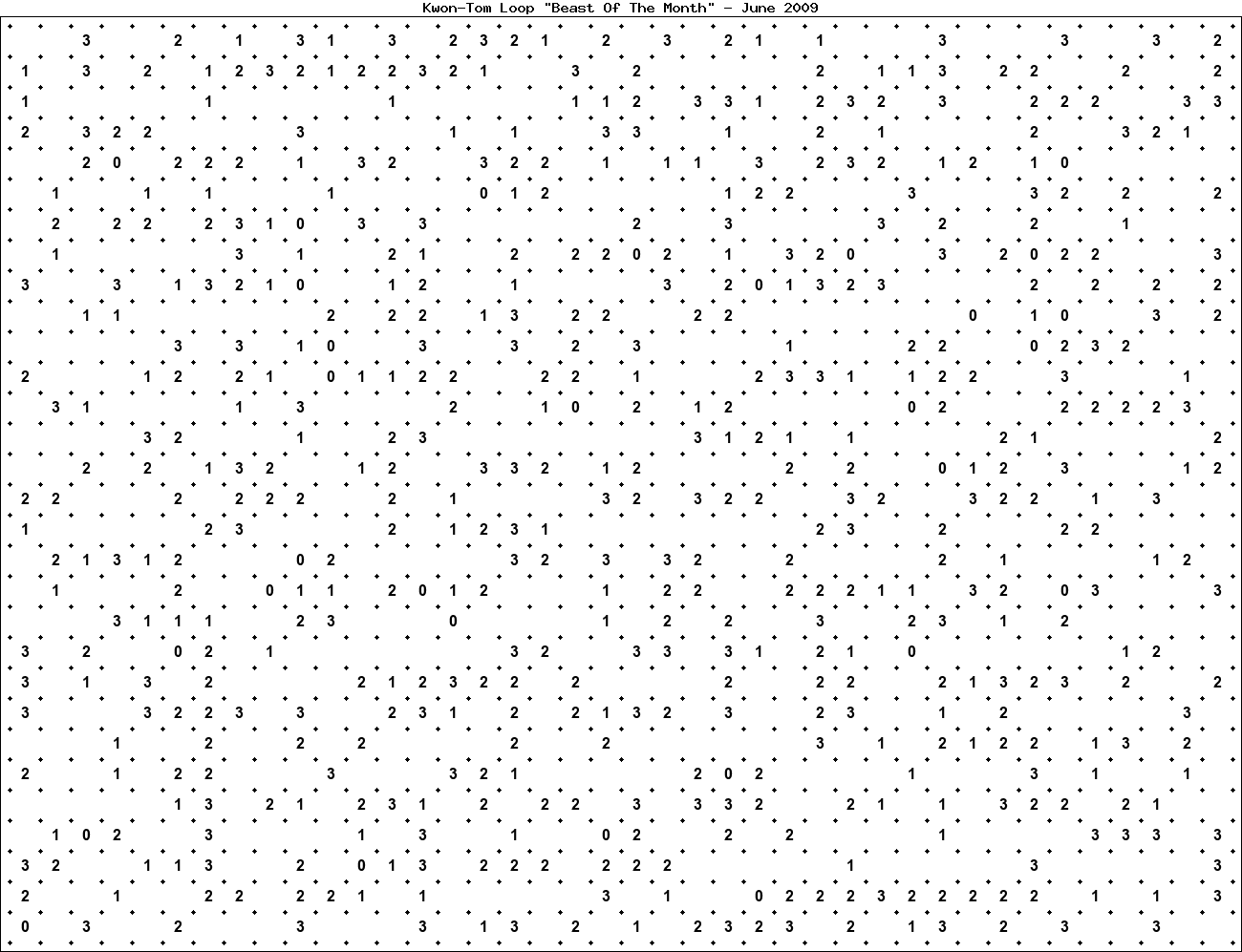 The "Beast Of The Month" is a very large puzzle, too big to display in the usual Kwon-Tom Loop interactive format. It's presented here as an image which you can print off and solve on paper.Printable Beast June 2009(solution)