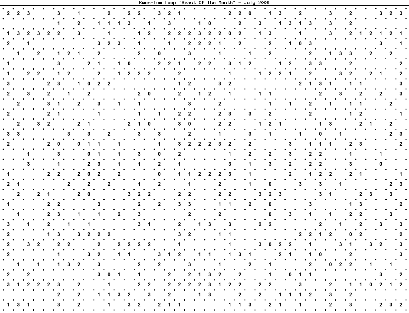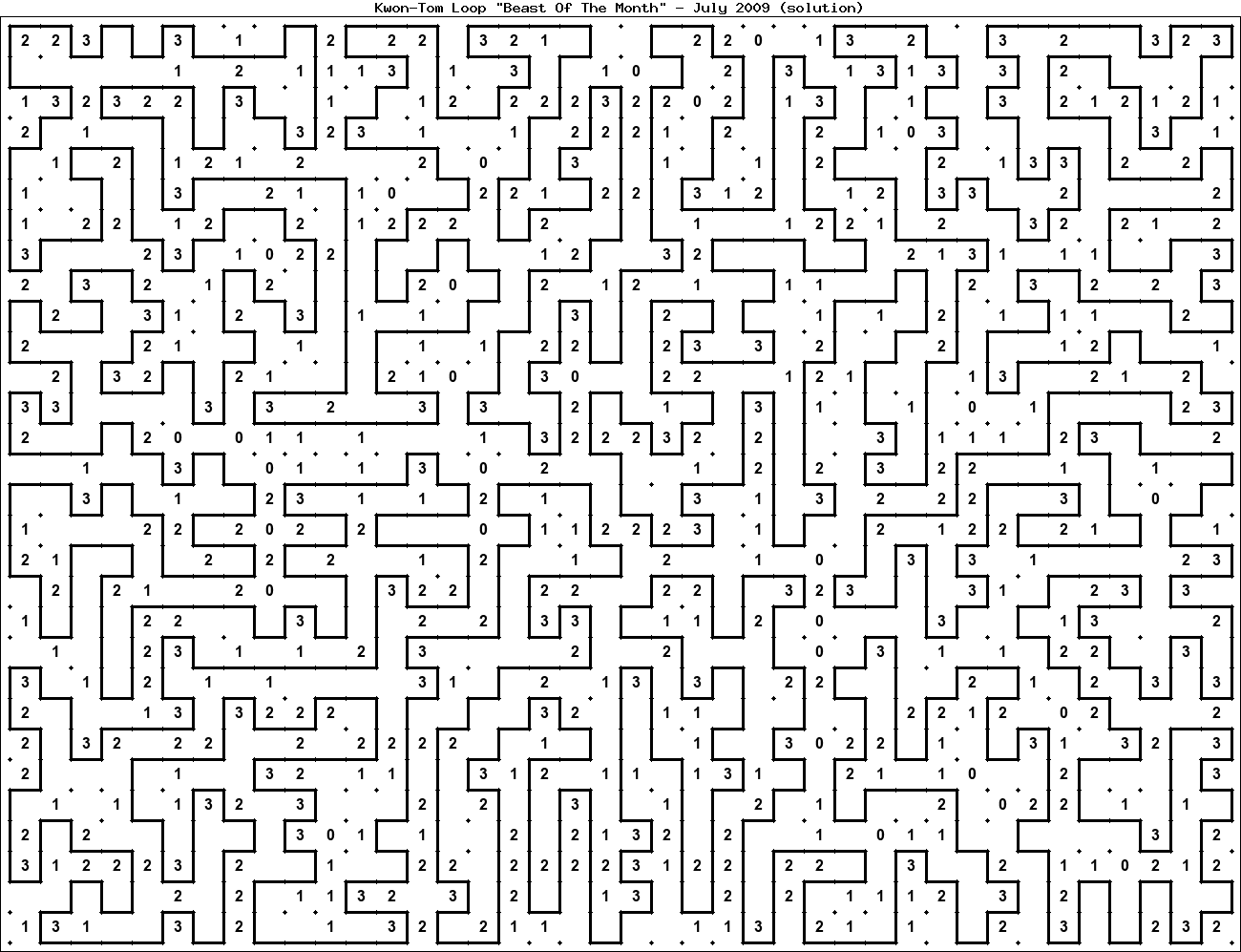 The "Beast Of The Month" is a very large puzzle, too big to display in the usual Kwon-Tom Loop interactive format. It's presented here as an image which you can print off and solve on paper.Printable Beast July 2009(solution)