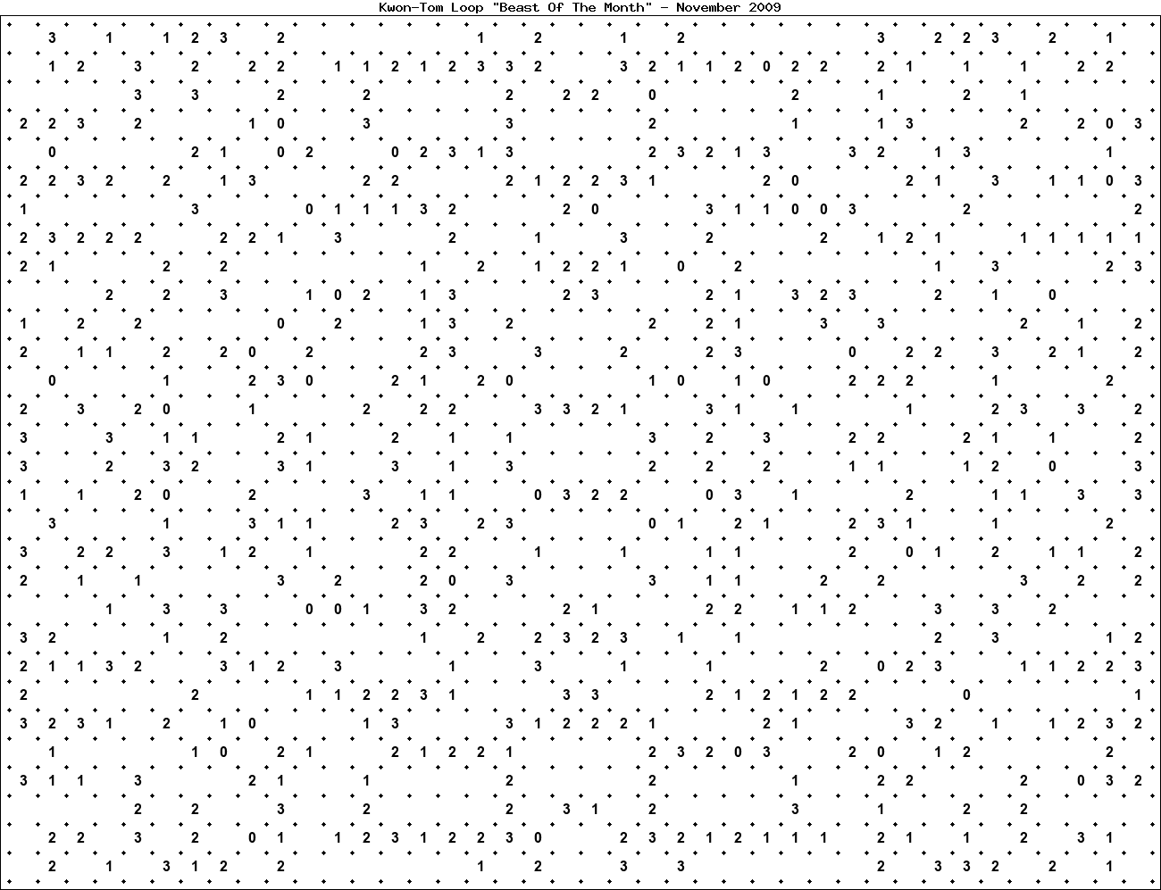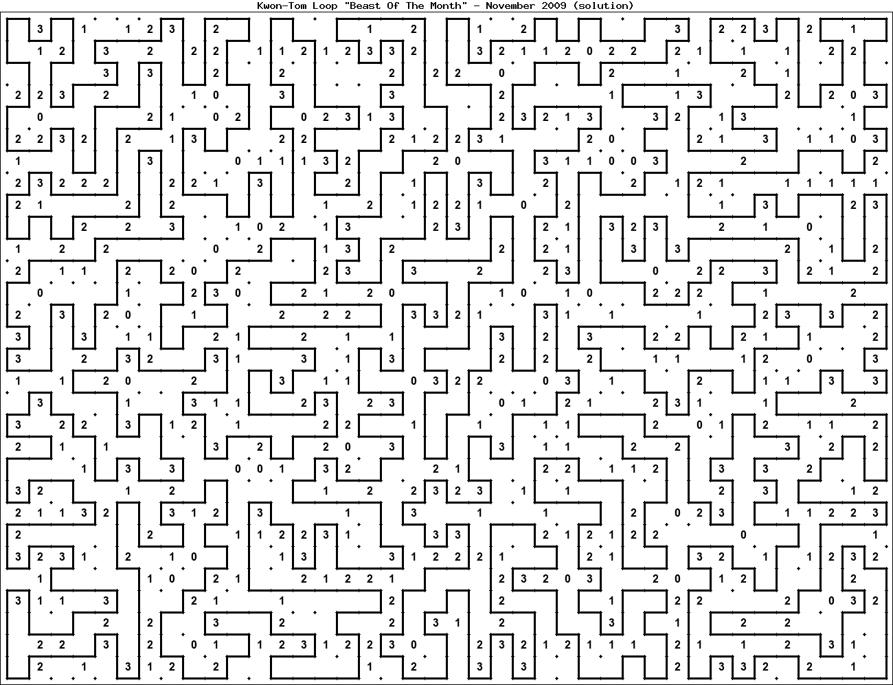 The "Beast Of The Month" is a very large puzzle, too big to display in the usual Kwon-Tom Loop interactive format. It's presented here as an image which you can print off and solve on paper.Printable Beast November 2009(solution)