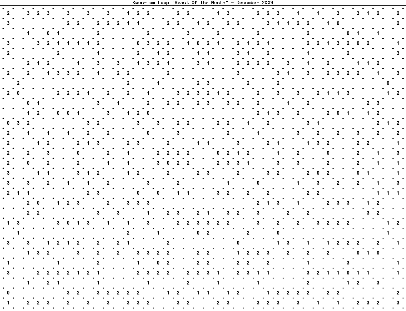 The "Beast Of The Month" is a very large puzzle, too big to display in the usual Kwon-Tom Loop interactive format. It's presented here as an image which you can print off and solve on paper.Printable Beast December 2009(solution)