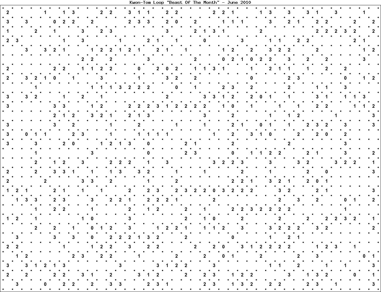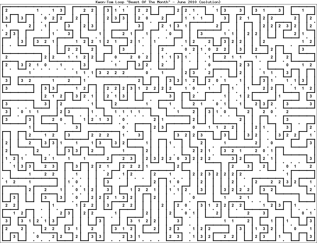 The "Beast Of The Month" is a very large puzzle, too big to display in the usual Kwon-Tom Loop interactive format. It's presented here as an image which you can print off and solve on paper.Printable Beast June 2010(solution)