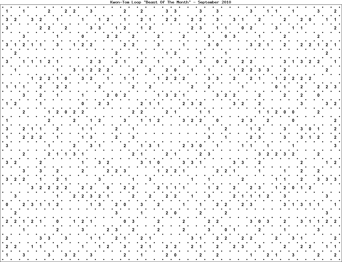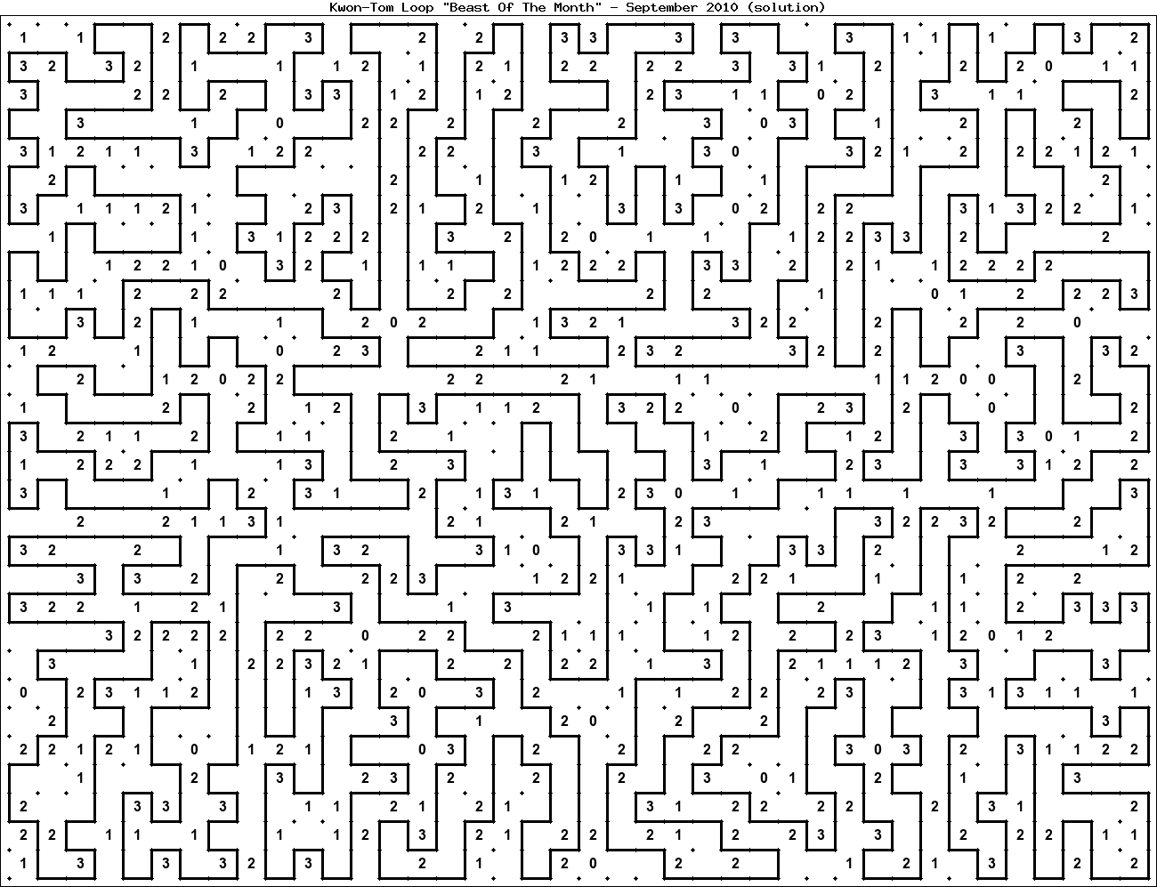 The "Beast Of The Month" is a very large puzzle, too big to display in the usual Kwon-Tom Loop interactive format. It's presented here as an image which you can print off and solve on paper.Printable Beast September 2010(solution)