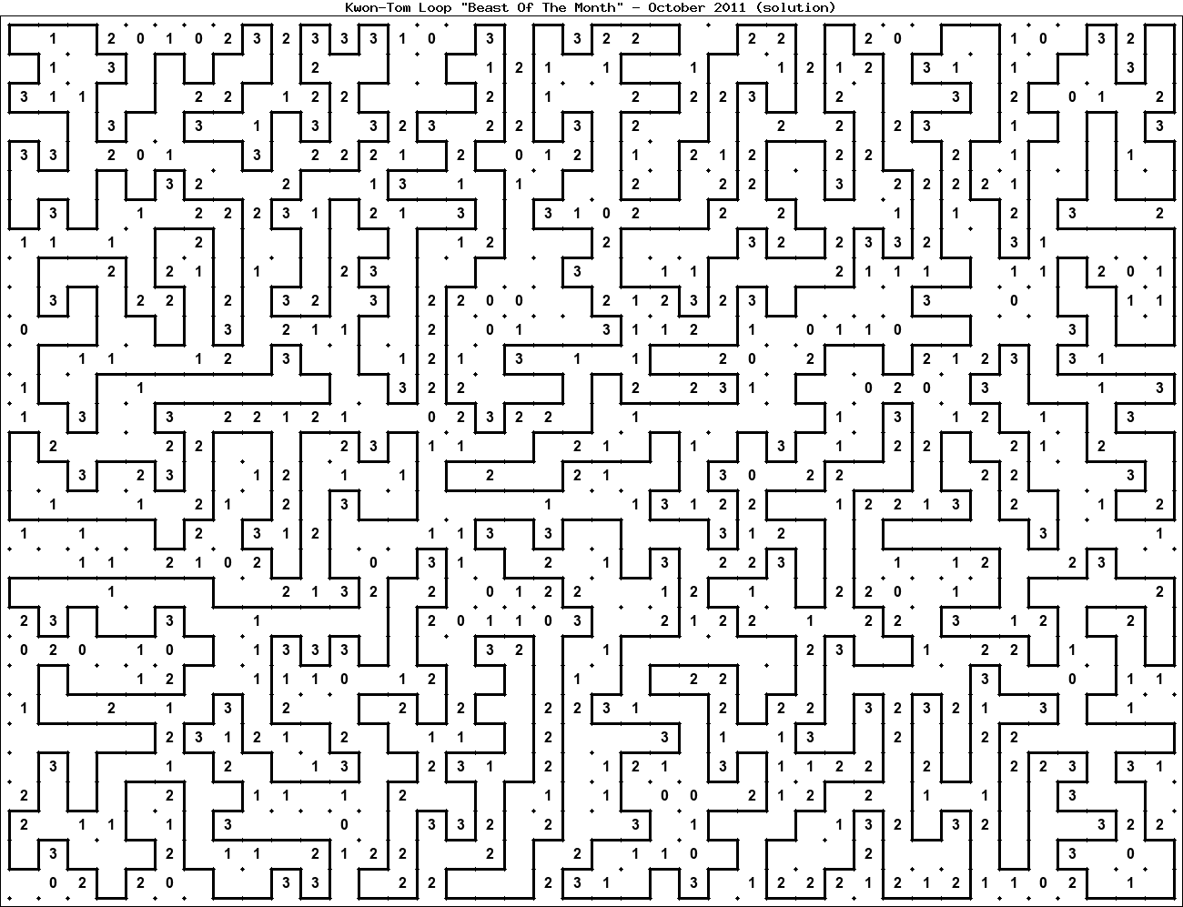 The "Beast Of The Month" is a very large puzzle, too big to display in the usual Kwon-Tom Loop interactive format. It's presented here as an image which you can print off and solve on paper.Printable Beast October 2011(solution)