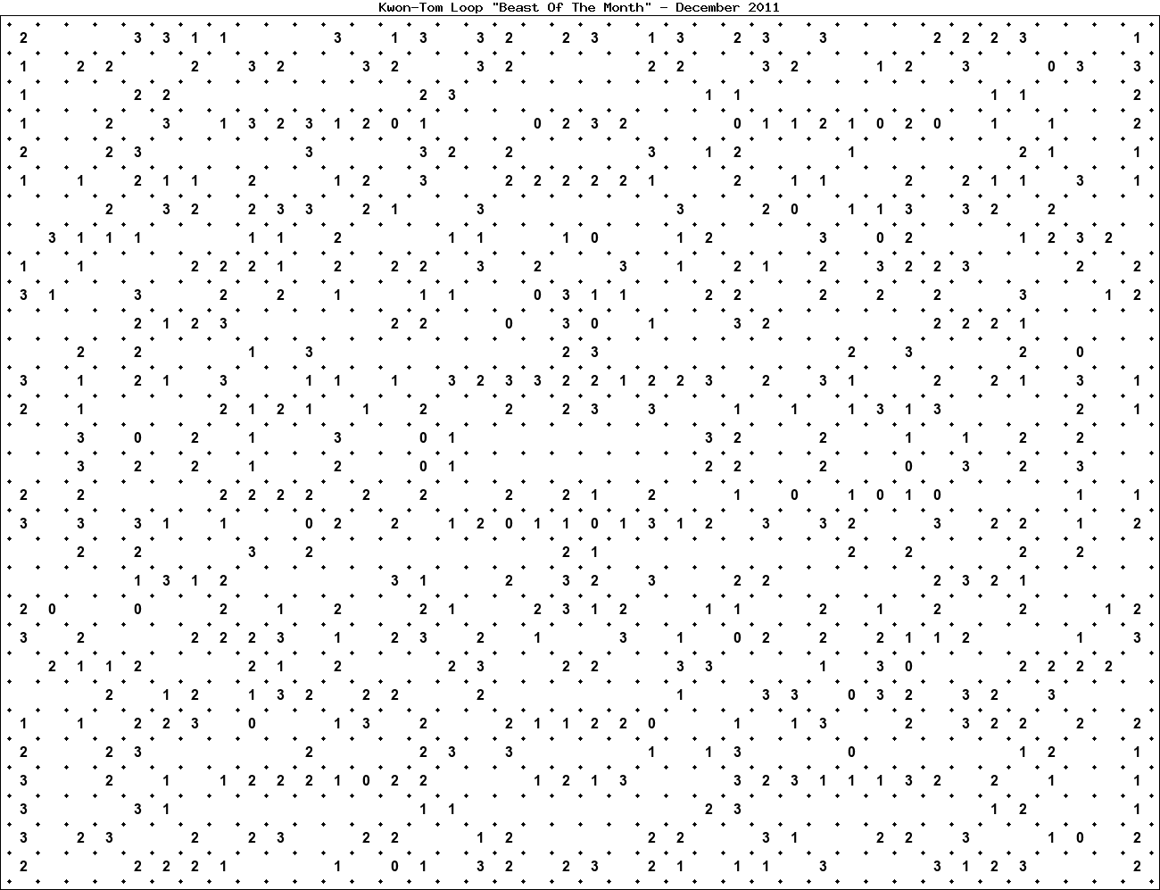 The "Beast Of The Month" is a very large puzzle, too big to display in the usual Kwon-Tom Loop interactive format. It's presented here as an image which you can print off and solve on paper.Printable Beast December 2011(solution)