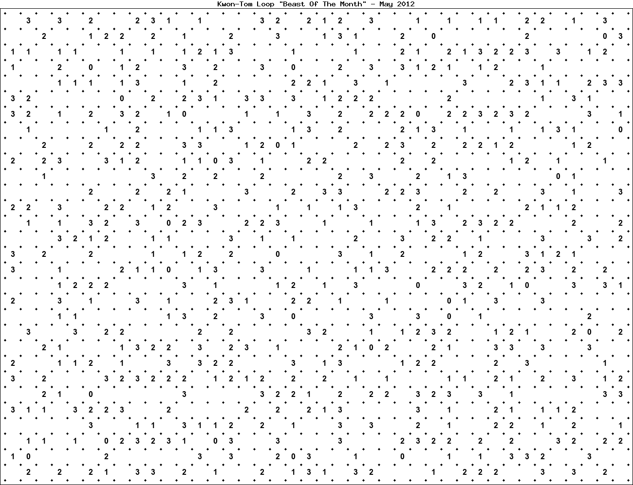 The "Beast Of The Month" is a very large puzzle, too big to display in the usual Kwon-Tom Loop interactive format. It's presented here as an image which you can print off and solve on paper.Printable Beast May 2012(solution)