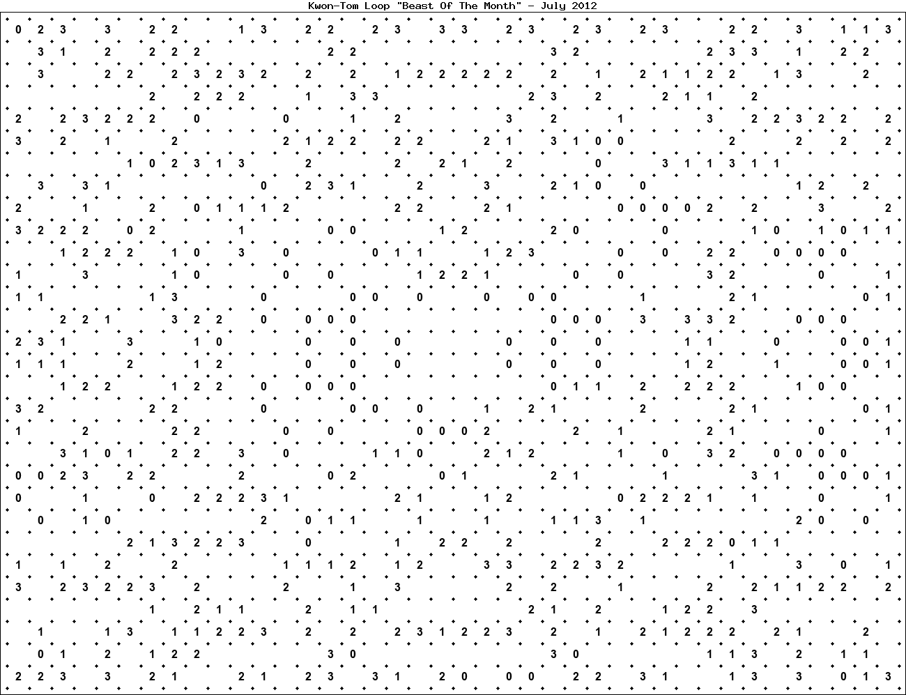 The "Beast Of The Month" is a very large puzzle, too big to display in the usual Kwon-Tom Loop interactive format. It's presented here as an image which you can print off and solve on paper.Printable Beast July 2012(solution)