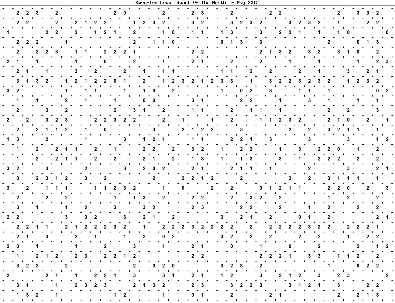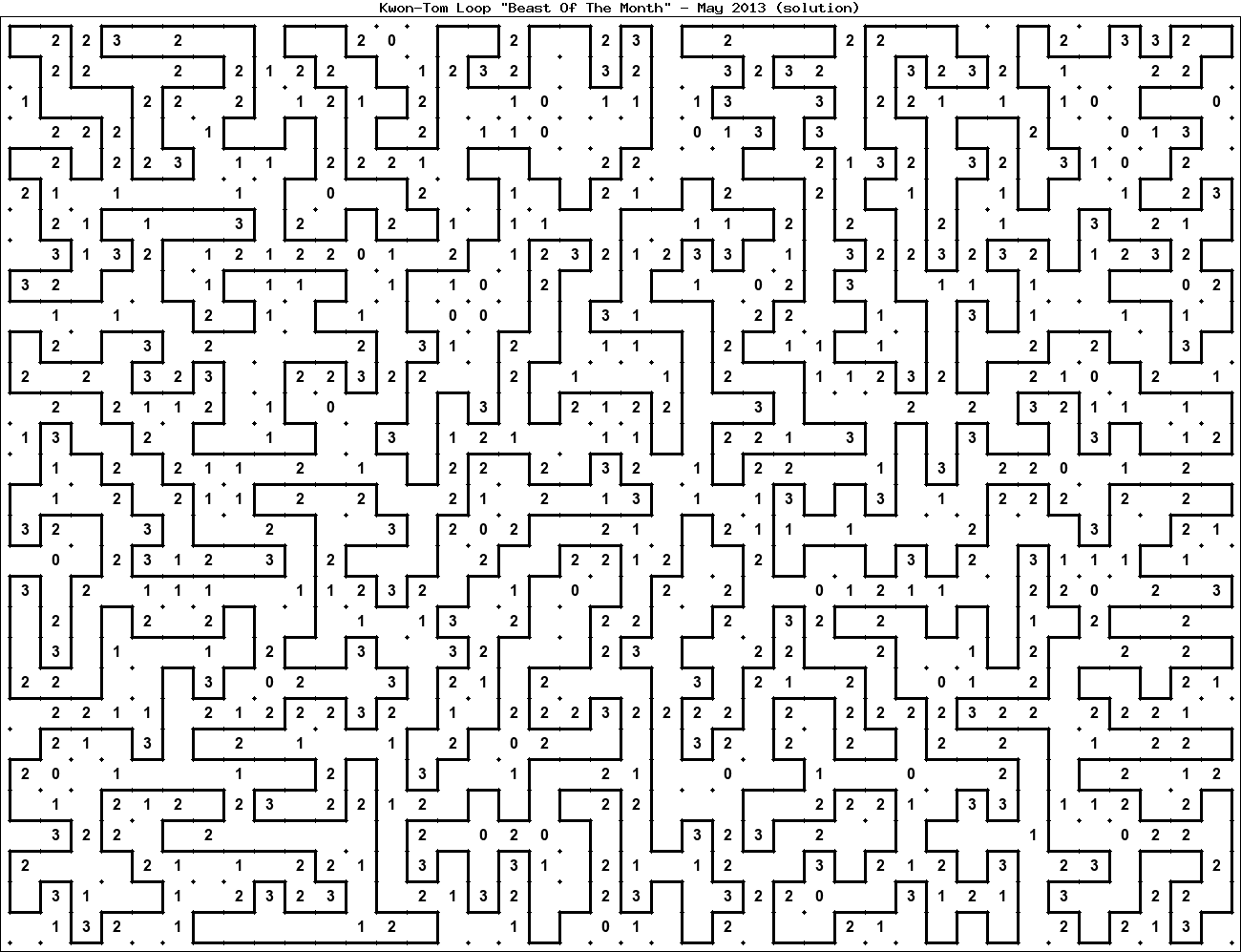 The "Beast Of The Month" is a very large puzzle, too big to display in the usual Kwon-Tom Loop interactive format. It's presented here as an image which you can print off and solve on paper.Printable Beast May 2013(solution)