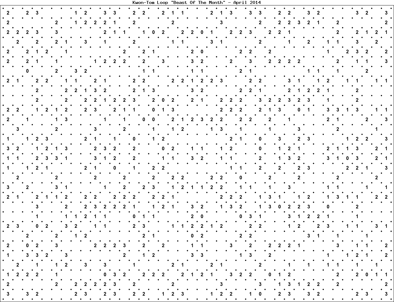 The "Beast Of The Month" is a very large puzzle, too big to display in the usual Kwon-Tom Loop interactive format. It's presented here as an image which you can print off and solve on paper.Printable Beast April 2014(solution)