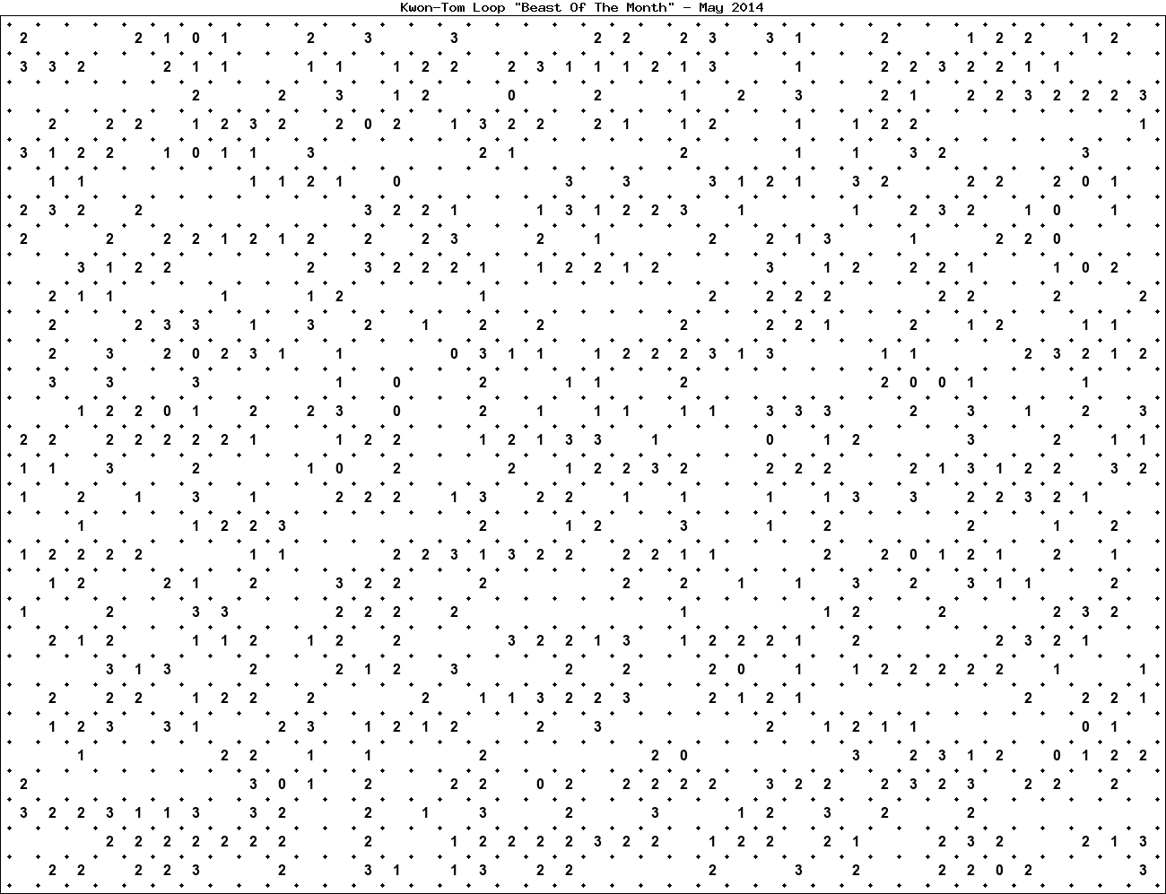 The "Beast Of The Month" is a very large puzzle, too big to display in the usual Kwon-Tom Loop interactive format. It's presented here as an image which you can print off and solve on paper.Printable Beast May 2014(solution)