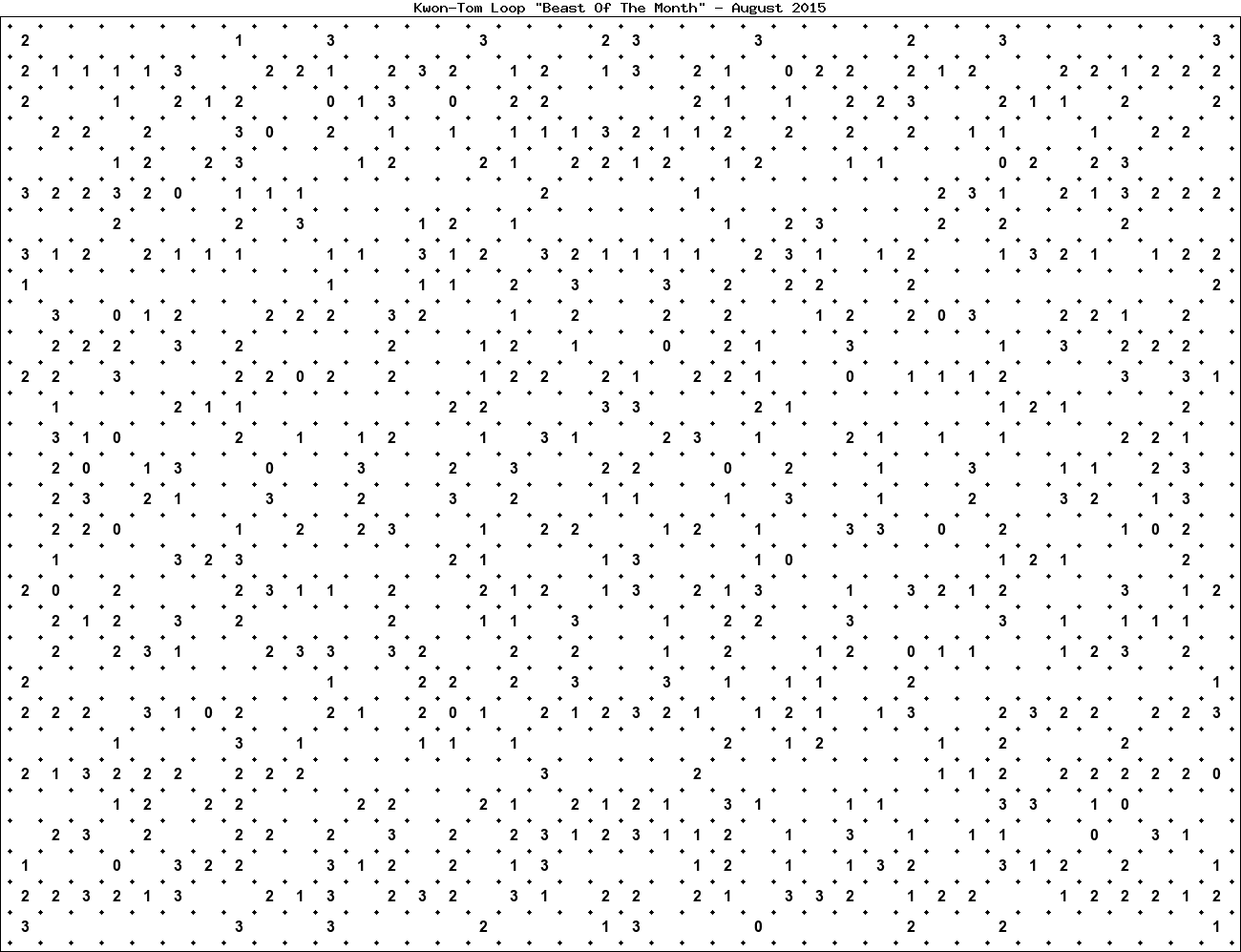 The "Beast Of The Month" is a very large puzzle, too big to display in the usual Kwon-Tom Loop interactive format. It's presented here as an image which you can print off and solve on paper.Printable Beast August 2015(solution)