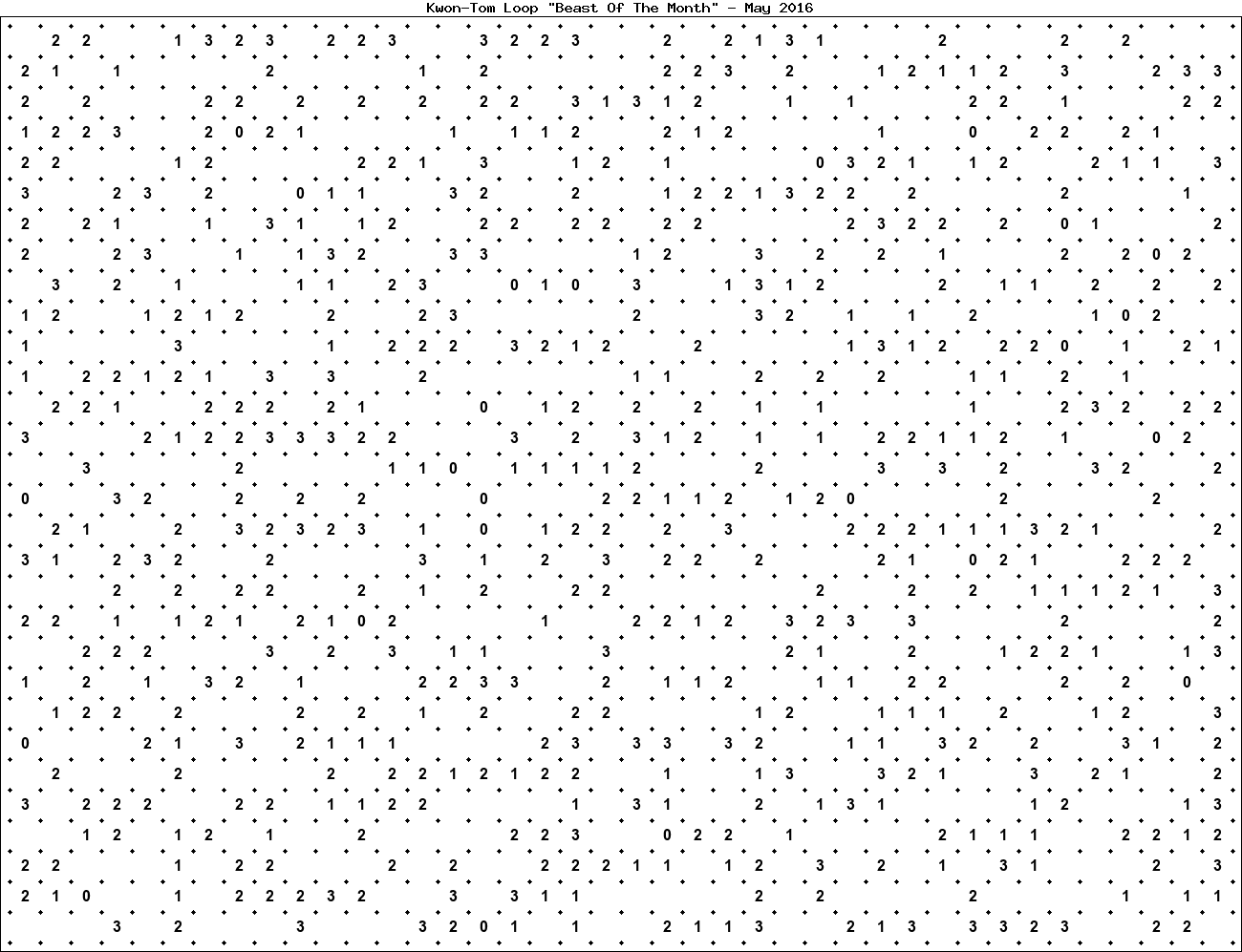 The "Beast Of The Month" is a very large puzzle, too big to display in the usual Kwon-Tom Loop interactive format. It's presented here as an image which you can print off and solve on paper.Printable Beast May 2016(solution)