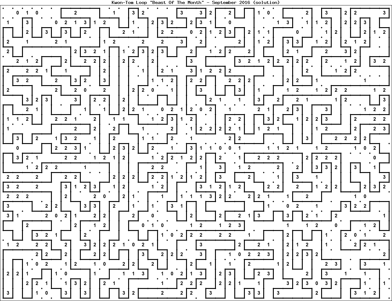 The "Beast Of The Month" is a very large puzzle, too big to display in the usual Kwon-Tom Loop interactive format. It's presented here as an image which you can print off and solve on paper.Printable Beast September 2016(solution)