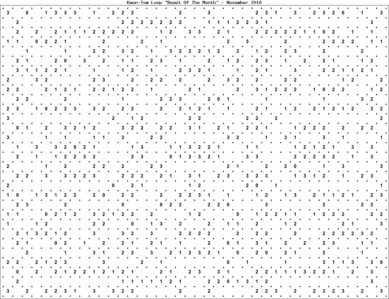 The "Beast Of The Month" is a very large puzzle, too big to display in the usual Kwon-Tom Loop interactive format. It's presented here as an image which you can print off and solve on paper.Printable Beast November 2018(solution)