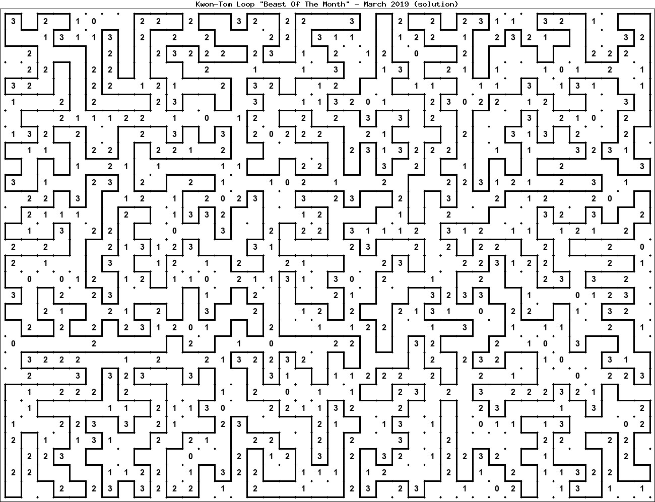 The "Beast Of The Month" is a very large puzzle, too big to display in the usual Kwon-Tom Loop interactive format. It's presented here as an image which you can print off and solve on paper.Printable Beast March 2019(solution)