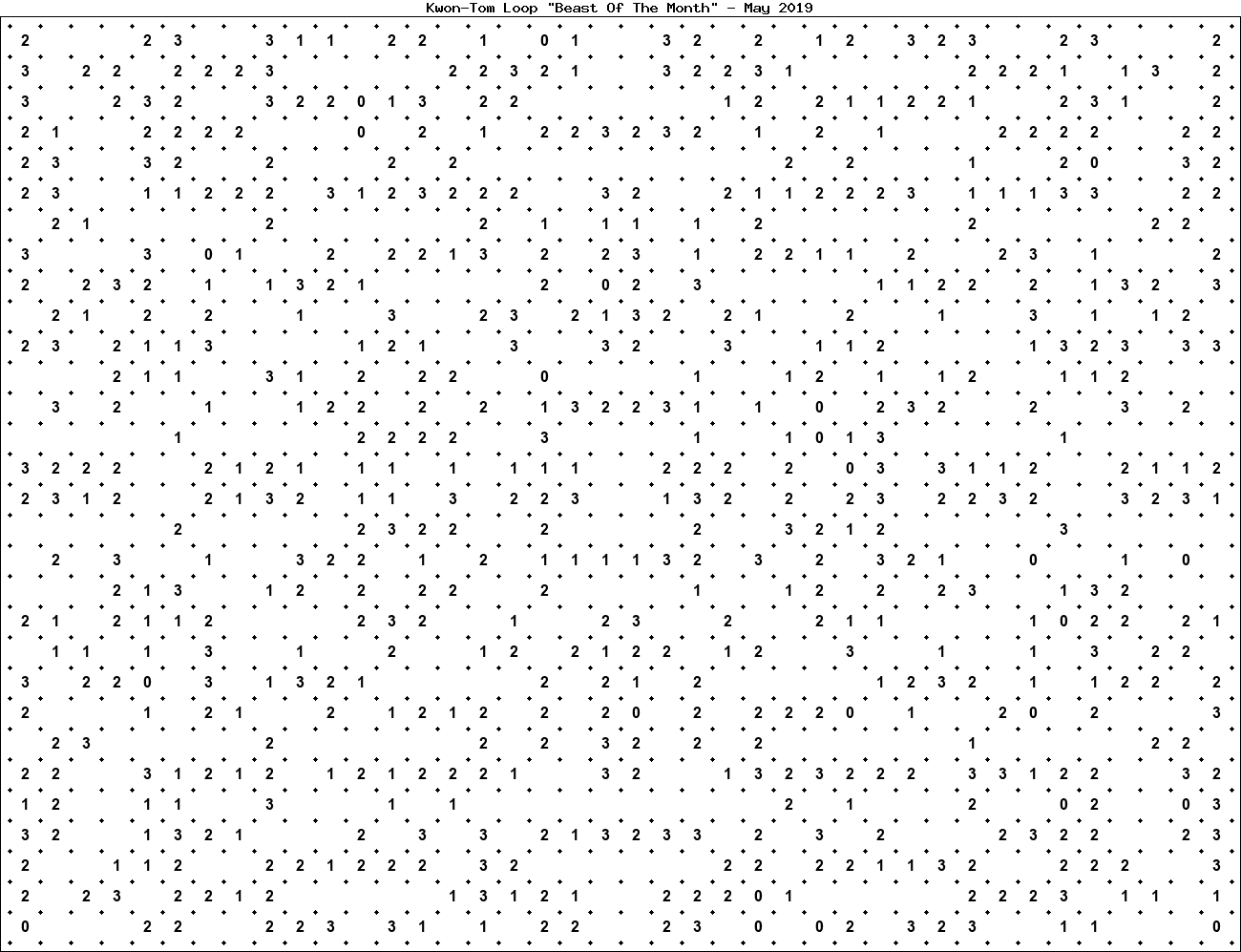 The "Beast Of The Month" is a very large puzzle, too big to display in the usual Kwon-Tom Loop interactive format. It's presented here as an image which you can print off and solve on paper.Printable Beast May 2019(solution)