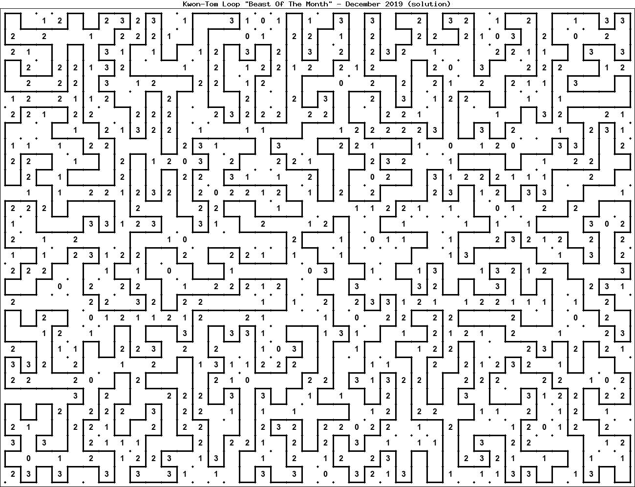 The "Beast Of The Month" is a very large puzzle, too big to display in the usual Kwon-Tom Loop interactive format. It's presented here as an image which you can print off and solve on paper.Printable Beast December 2019(solution)