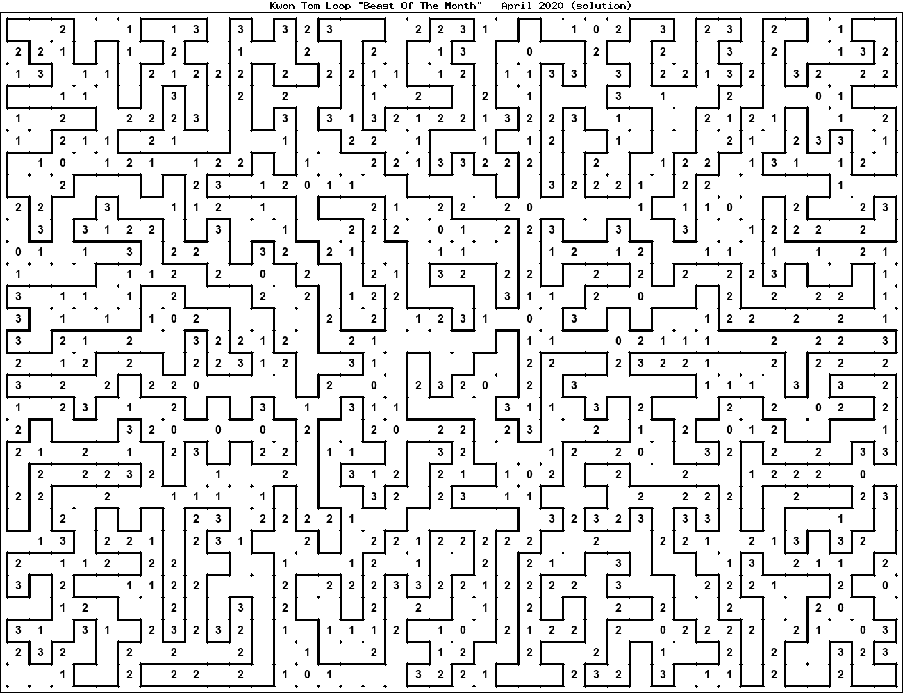 The "Beast Of The Month" is a very large puzzle, too big to display in the usual Kwon-Tom Loop interactive format. It's presented here as an image which you can print off and solve on paper.Printable Beast April 2020(solution)