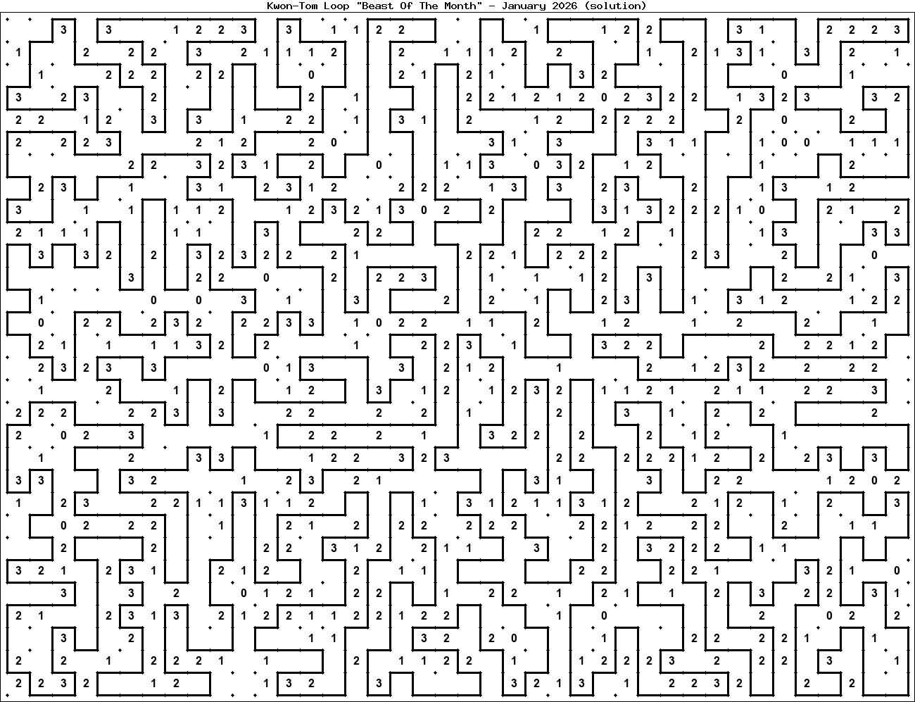 The "Beast Of The Month" is a very large puzzle, too big to display in the usual Kwon-Tom Loop interactive format. It's presented here as an image which you can print off and solve on paper.Printable Beast January 2026(solution)