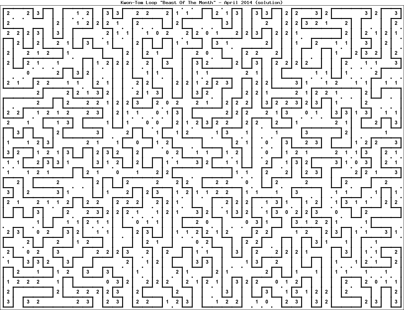 The "Beast Of The Month" is a very large puzzle, too big to display in the usual Kwon-Tom Loop interactive format. It's presented here as an image which you can print off and solve on paper.Printable Beast April 2014(solution)