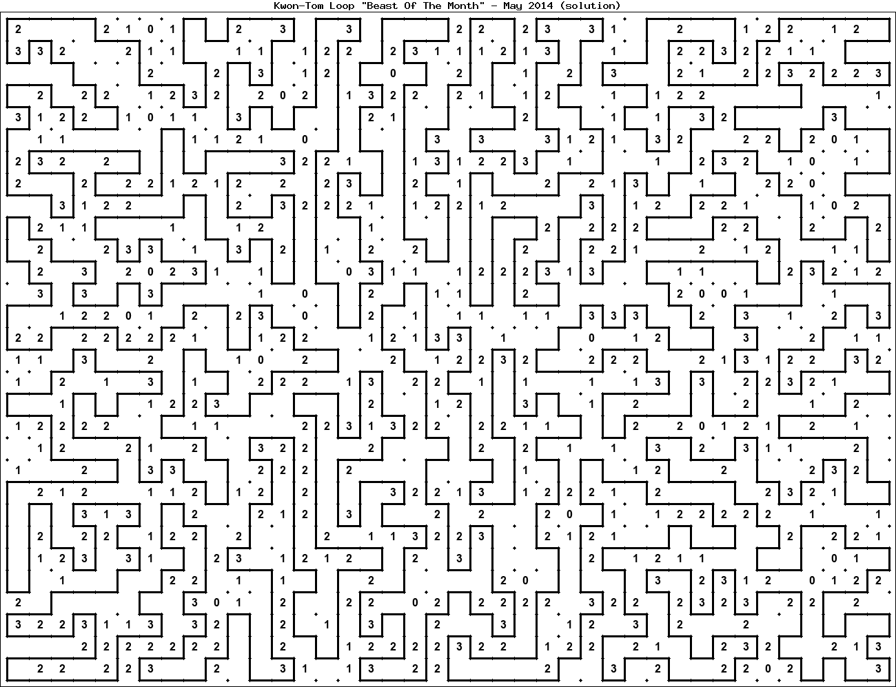 The "Beast Of The Month" is a very large puzzle, too big to display in the usual Kwon-Tom Loop interactive format. It's presented here as an image which you can print off and solve on paper.Printable Beast May 2014(solution)