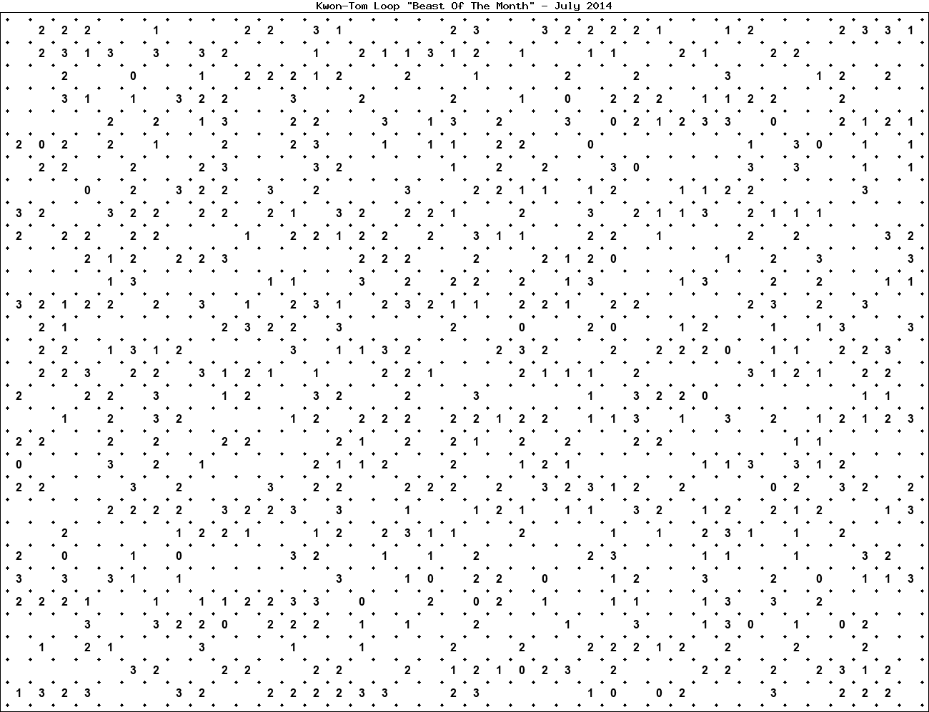 The "Beast Of The Month" is a very large puzzle, too big to display in the usual Kwon-Tom Loop interactive format. It's presented here as an image which you can print off and solve on paper.Printable Beast July 2014(solution)