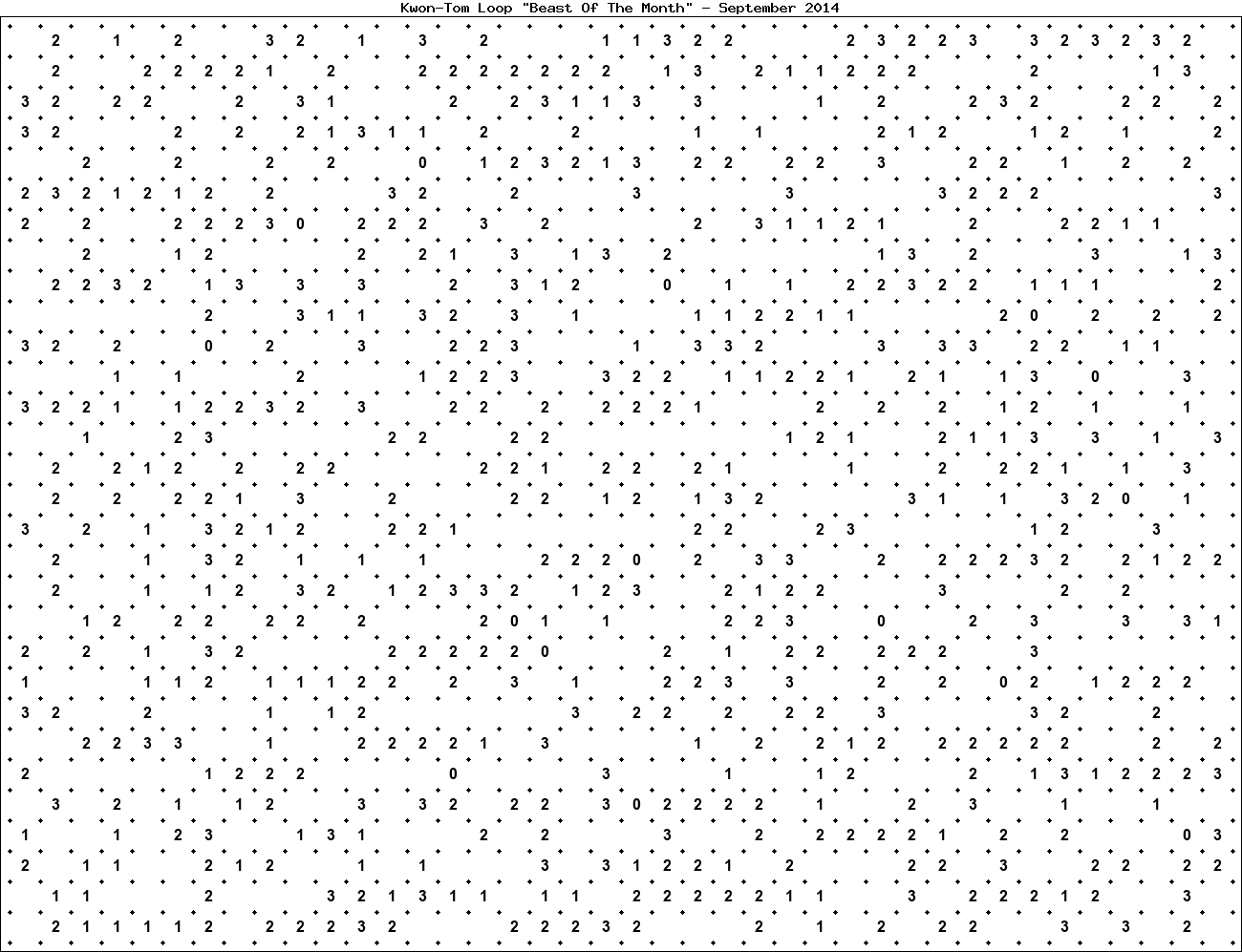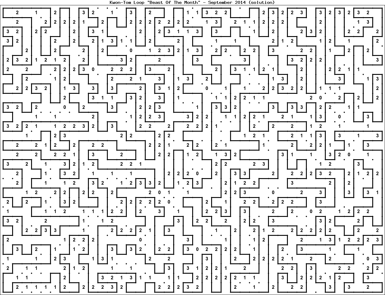 The "Beast Of The Month" is a very large puzzle, too big to display in the usual Kwon-Tom Loop interactive format. It's presented here as an image which you can print off and solve on paper.Printable Beast September 2014(solution)