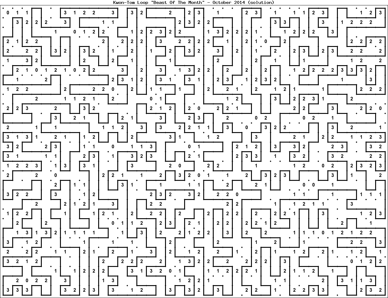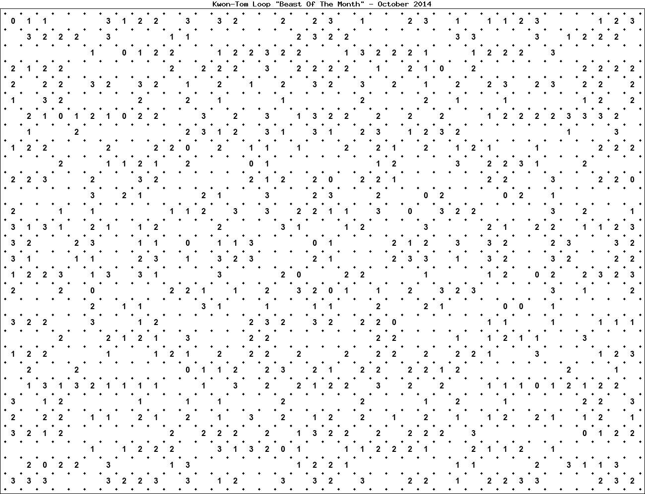The "Beast Of The Month" is a very large puzzle, too big to display in the usual Kwon-Tom Loop interactive format. It's presented here as an image which you can print off and solve on paper.Printable Beast October 2014(solution)